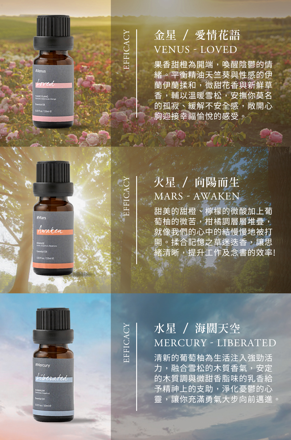 Mars aroma blends: Sweet orange, lemon, grapefruit, rosemary
