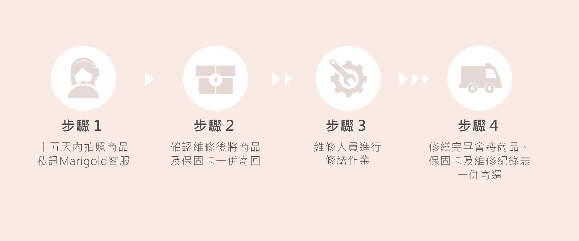 在您收到商品後若發現非人為因素之瑕疵,請勿拆除封膜並於15天內拍照私訊官方,客服人員將盡快協助您。若確認需維修,請將商品寄回,維修人員會進行後續修繕,完成後寄還。