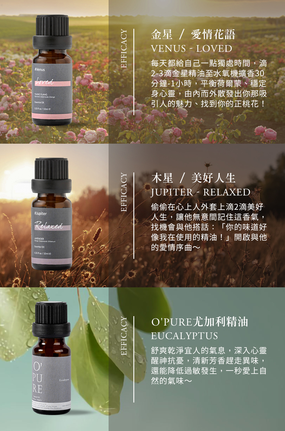 喜愛房間香香的你怎麼能錯過這組小空間芳香大師呢?內容含有幫助好眠的「木星-美好人生」、幫你招好桃花的「金星-愛情花語」以及告別塵螨的「尤加利」,運用小巧的水氧機讓整個房間被香氣包圍吧~