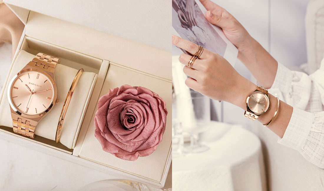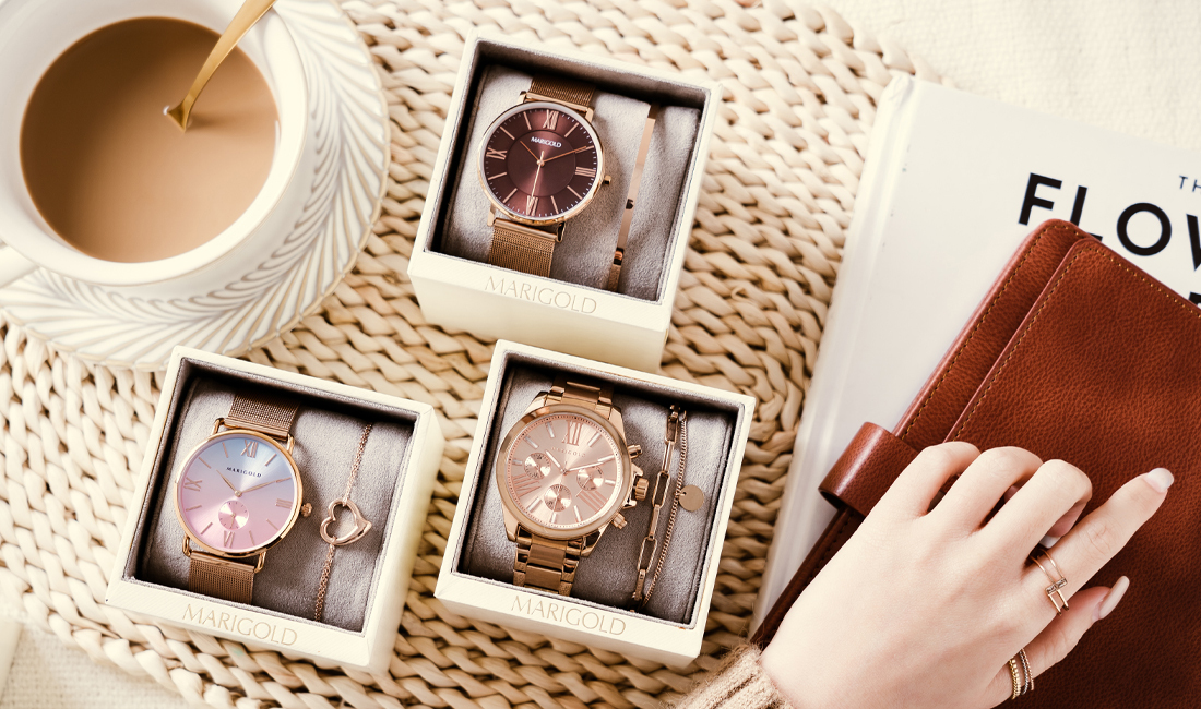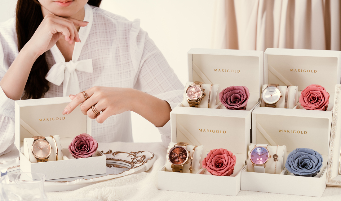當生活被浪漫包圍~甜蜜、好運也會跟著一起被帶來~到MARIGOLD挑選最適合自己的美錶禮盒,購物滿$3,800再送品牌可攜式飾品盒喔~