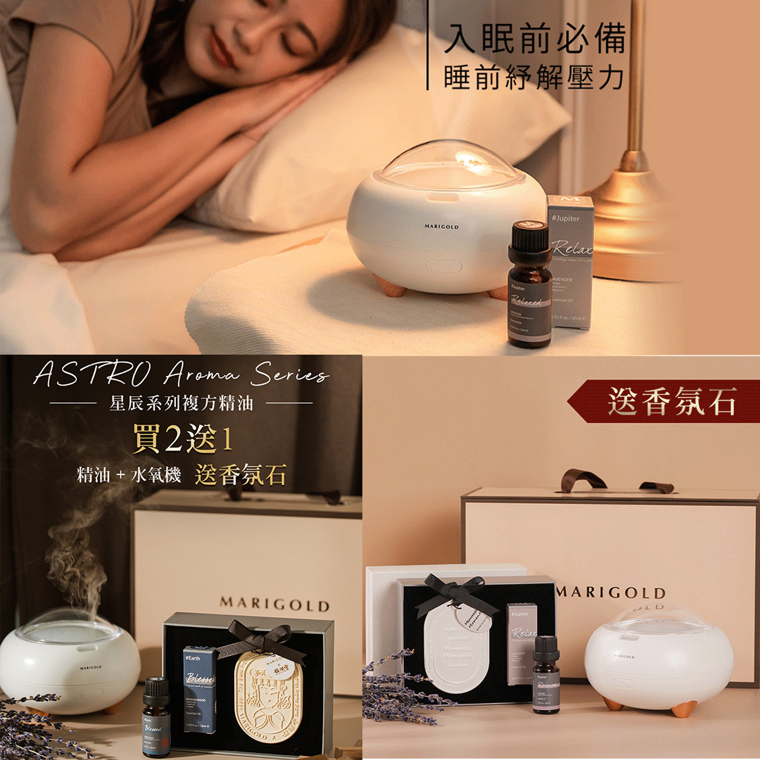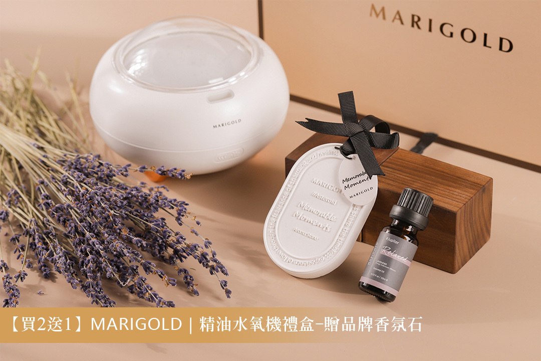 這款【買2送1】MARIGOLD |精油水氧機禮盒-贈品牌香氛石禮盒