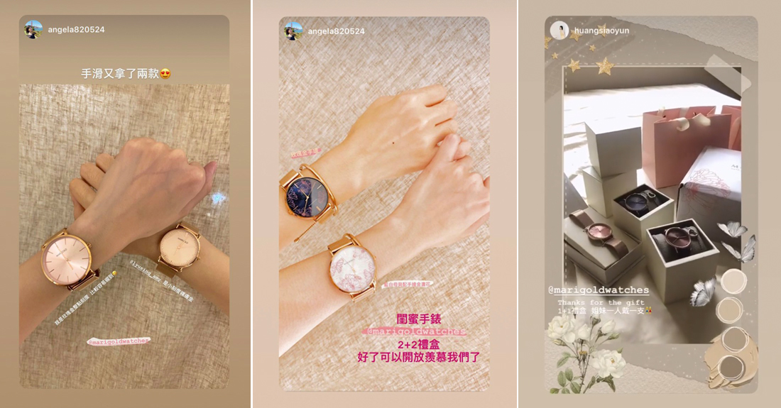 不僅情侶愛對錶,與閨蜜戴對錶更能顯出彼此情誼!粉絲大推幸福1+1禮盒,一支手錶加一支手環的超美搭配,無論是日常配戴或與閨蜜戴姊妹對錶都好看,一不小心就又手滑多買兩支~接下來期間限定MARIGOLD即將推出閨蜜2+2禮盒,絕對要好好鎖定MARIGOLD最新消息!