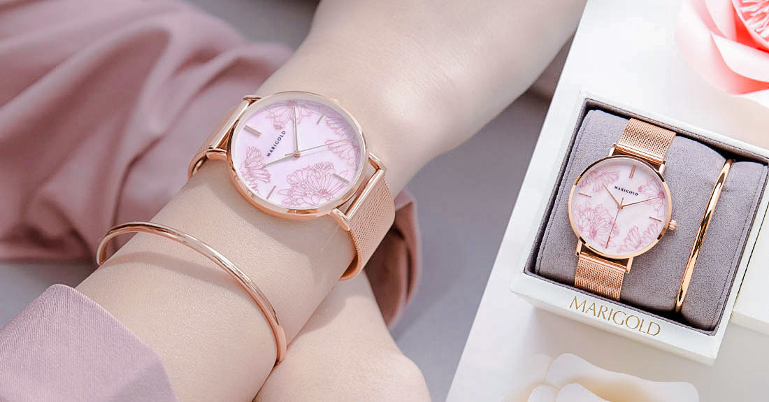 經典手繪Marigold金盞花錶款,「近在眼前的愛情」還不快把握!細膩線條筆筆勾出對她的愛慕,優雅滿點的花卉設計加上玫瑰金戴出粉色的青春、內心的溫柔,母貝錶面會因光線不同隱約折射光芒,如果心儀對象喜歡低調華麗路線,送這組絕對立即擄獲她的心!<<了解更多詳情>>