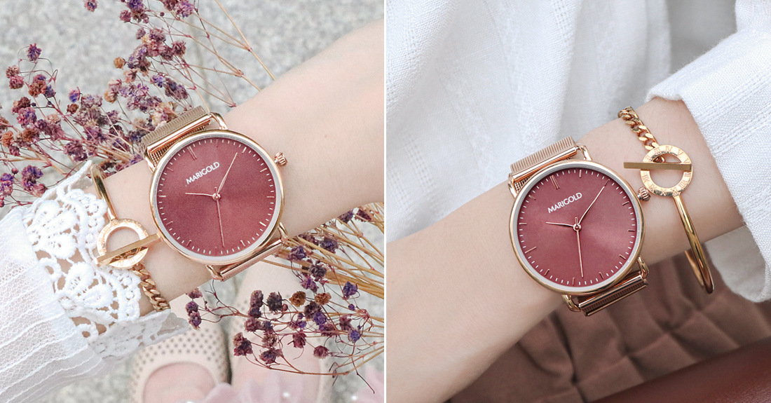 戴上皮錶帶的Jasmine錶款顯出你的輕鬆、悠然,完美呈現時下最流行的休閒時尚風!近期MARIGOLD全新推出閨蜜2+2禮盒,不妨趁此機會和姊妹一起購入、帶對錶,象徵兩人真摯不變的好情誼。