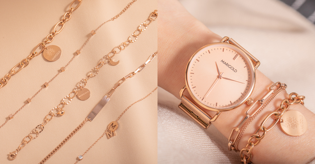 除了服裝外,對於飾品、配件女孩們也是超捨得重本投資,今天的穿著適合什麼樣的手鍊呢?搭這戒指好看嗎?MARIGOLD滿足女孩們心願,推出多款超美的韓系玫瑰金手鍊,不僅單戴能展現少女般的柔軟、細膩,多層次配戴或與手錶雙搭則更顯時尚氣質,超懂女孩們的飾品櫃裡總是會少那一條百搭的玫瑰金手鍊~