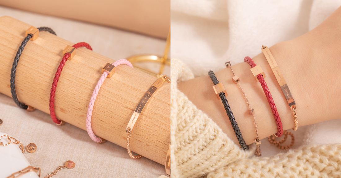 喜歡皮製飾品的你MARIGOLD這次也推出了皮繩手環,除了細膩的編織法為手環增添設計感外,還用了L、O、V、E字母結合可轉動的方塊設計作為點綴,象徵轉著轉著就轉到愛情面前,在個性的皮繩中多份少女情懷~也可以和玫瑰金手鍊作多層次配戴更有不同風格!