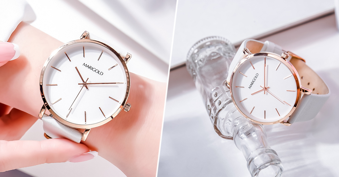 想要完美的穿搭,可不只限於服裝及鞋子,手上配飾更是一大重點!來支絕美的白色腕錶馬上為你的質感加分,更顯出個人品味!韓系腕錶品牌MARIGOLD推出經典白色錶款,以簡約優雅為設計主軸、戴出女性的優柔氣質卻不失自我個性,有支百搭的白色腕錶,是走在流行尖端的你必須擁有的時尚配件!