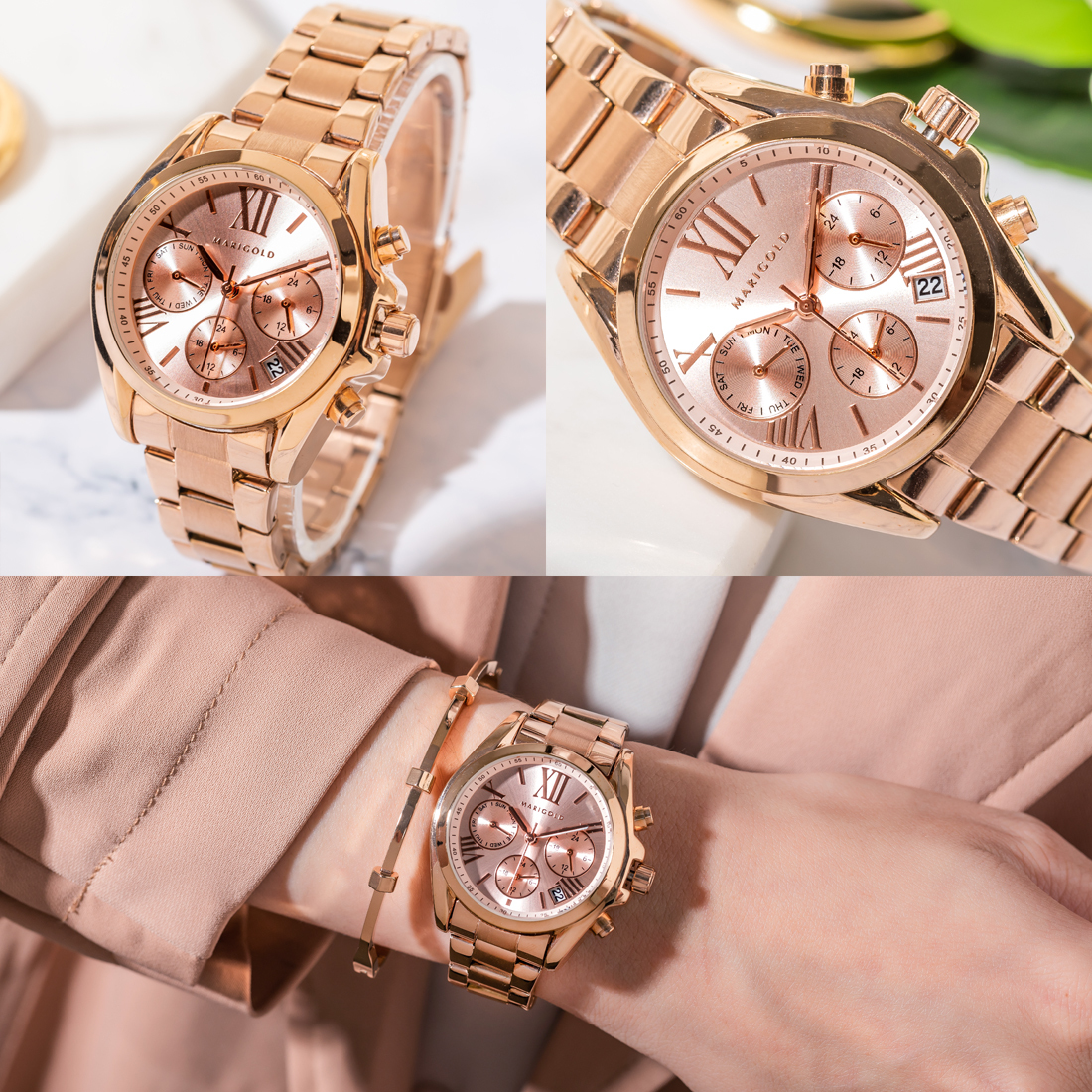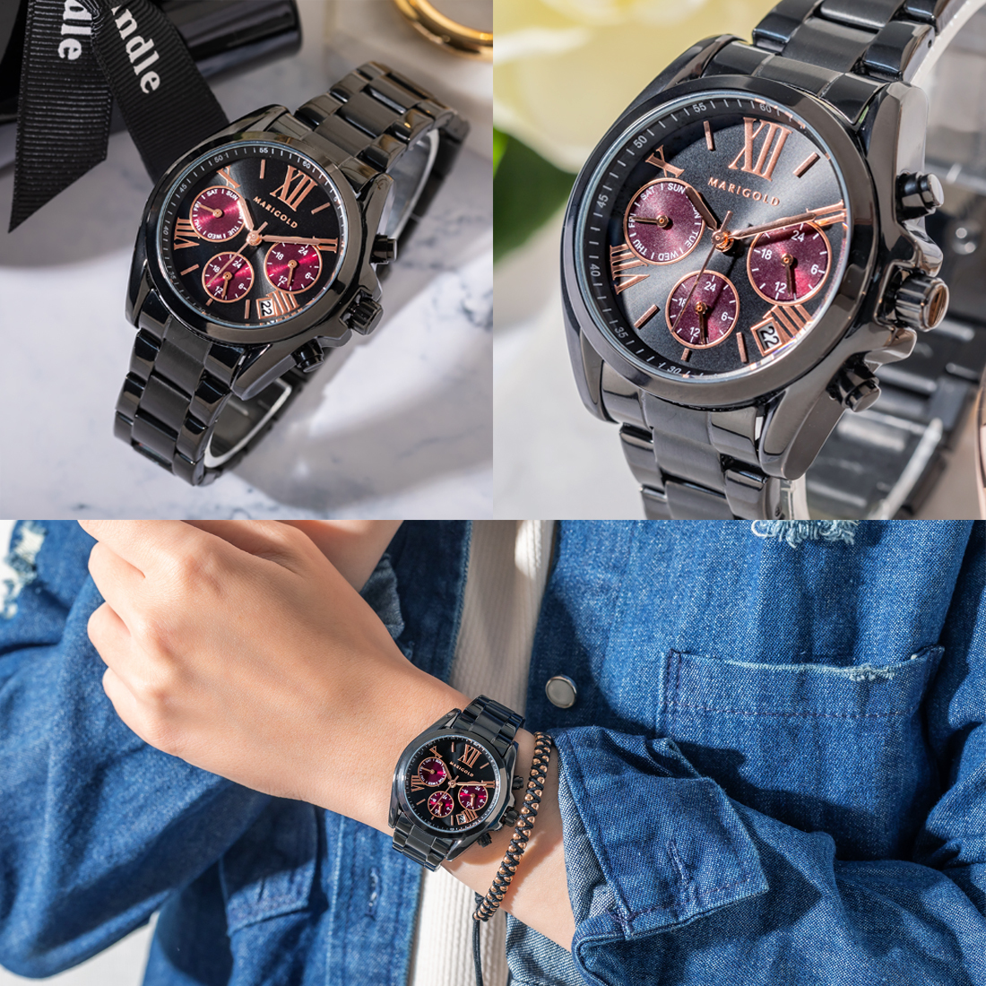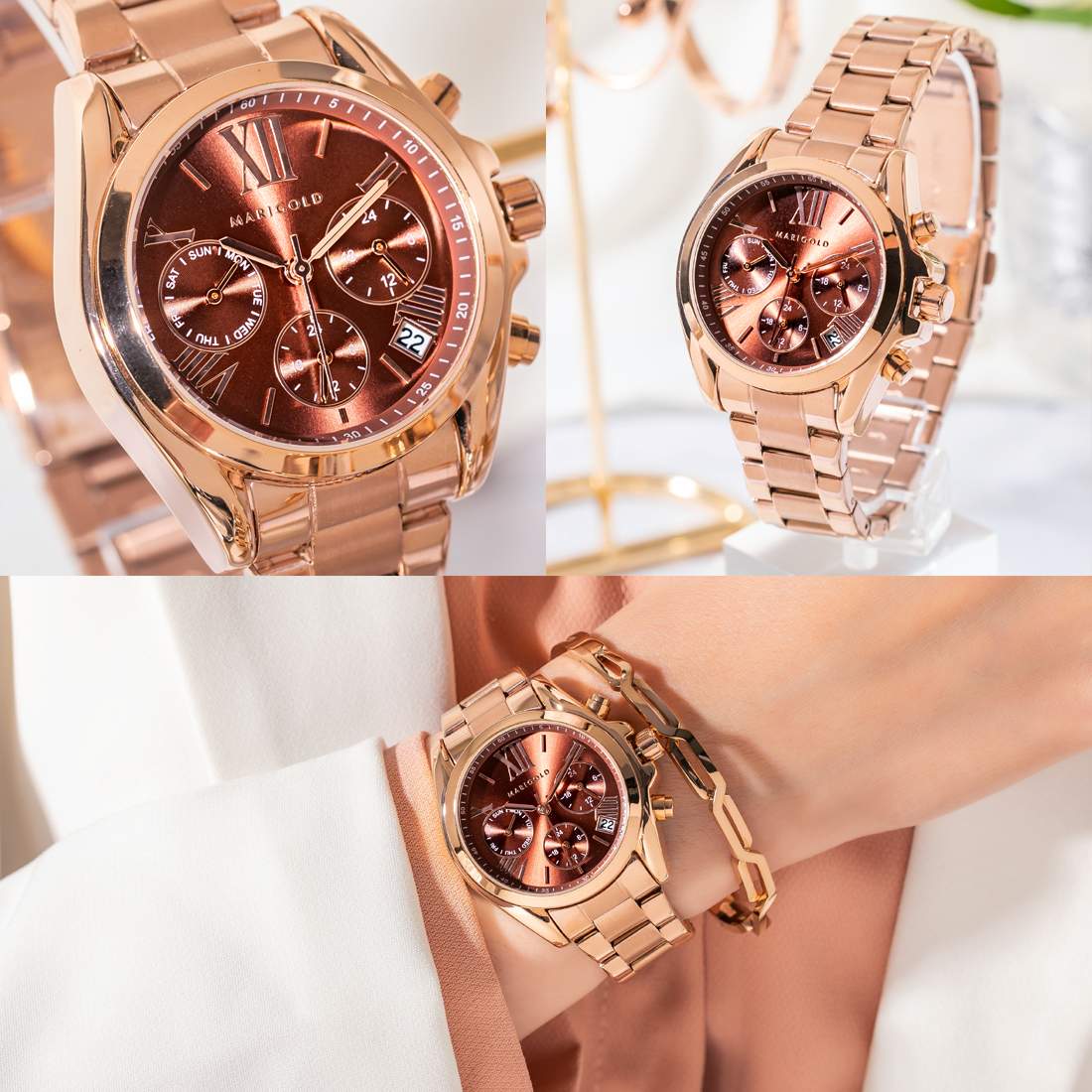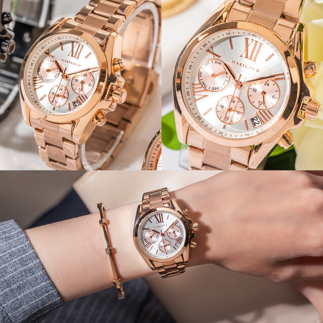市面上手錶款式玲瑯滿目,但鍊帶錶的款式就是那永恆不敗的時尚指標啊!MARIGOLD Paris daisy系列將瑪格麗特嬌小迷人的特點融入錶款,打造出輕盈、小錶面的真三眼錶款,打破以往功能型錶款都是大錶面印象,小手圍女生配戴也HOLD得住!5色全系列完美詮釋女生的摩登、溫柔、可人,戴出不同魅力的妳!