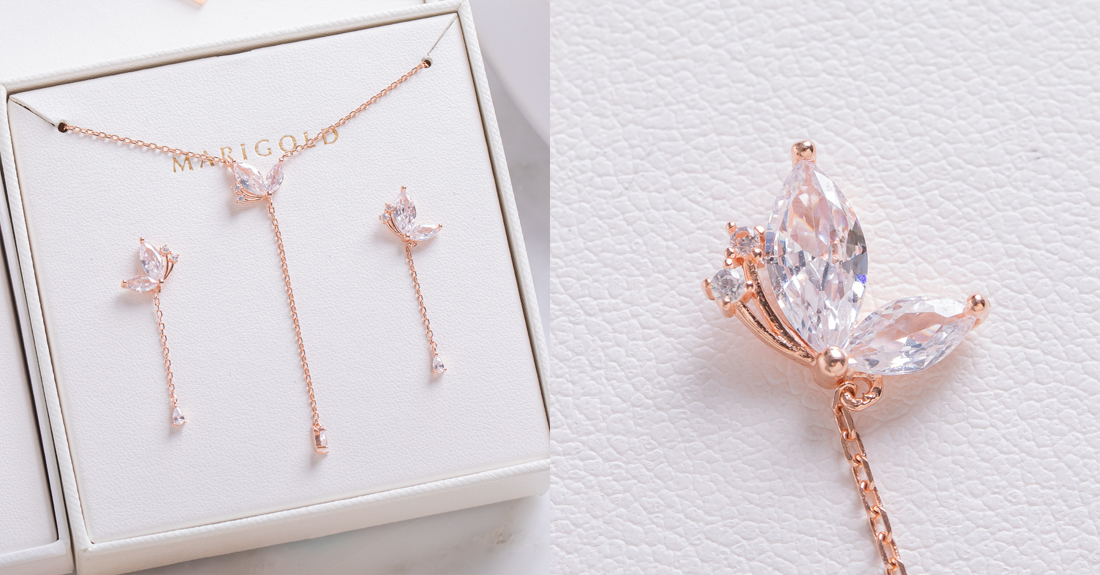 另外一組925純銀水鑽蝴蝶款也是人氣超高的款式!獨特的墜鍊設計拉長頸部線條及修飾臉部輪廓,讓整體看起來更修長、柔和~