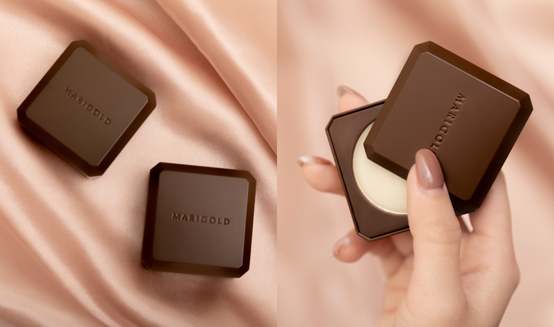 巧克力香膏一盒可裝兩種香膏芯,除了單擦迷人外、兩者疊擦能使香味更有層次,創造出專屬於自己的香氣!讓你擁有自己的嗅覺記憶、絕不和他人撞香!另外MARIGOLD這次在香膏裡還添加了保養成分乳木果油及維他命E,能使肌膚有著絲綢般的滑順觸感,這樣同時滿足嗅覺和觸覺的香氛單品難怪一上市就造成搶購風潮~