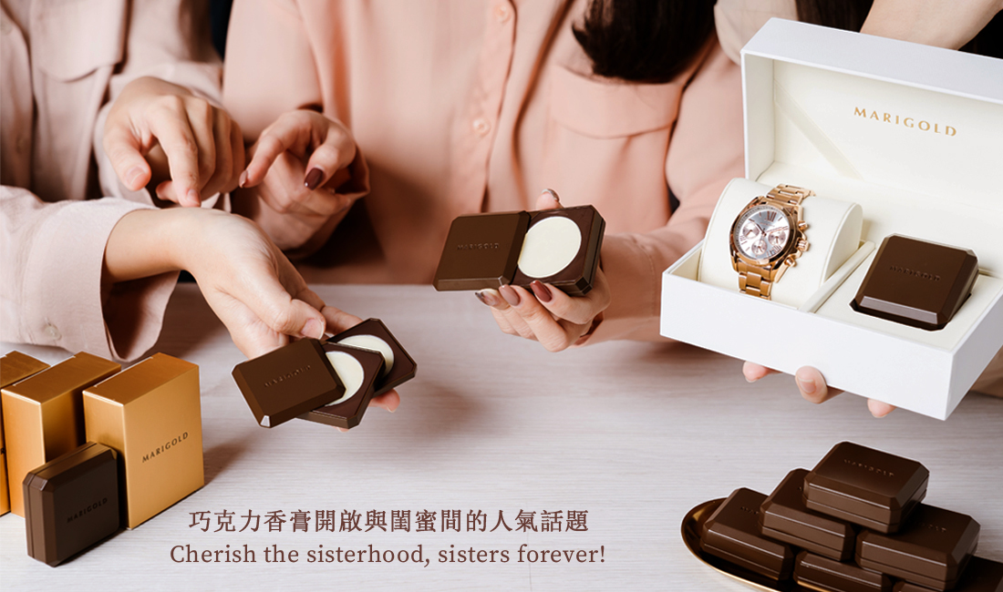 而今年最受大家矚目的聖誕禮物就是MARIGOLD的全新商品-巧克力香膏!全部共有8種香味可選擇,最厲害的一點是不只可以單擦,還可以疊擦打造專屬自己的香氣,真的超級好聞~完全不輸專櫃大牌!MARIGOLD同時也推出手錶香膏禮盒,高質感的腕錶搭配極品香氛讓你立刻變男神、女神!