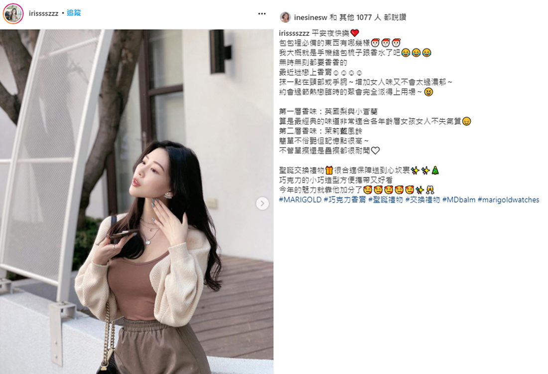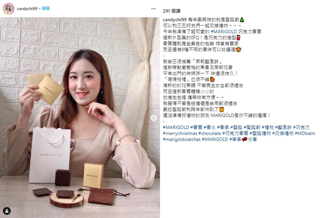 提到穿搭和時尚相信大家第一個想到會是服裝、妝容和髮型,但你知道嗎?若是穿上對的香味,個人的品味和魅力可是會瞬間提升!MARIGOLD全新推出的巧克力香膏,如同真的巧克力一樣的可愛外觀搭配8種獨家特調香味,馬上在社群媒體造成搶購風潮!今天就來開箱分享~一起來混搭出你的專屬香氣!