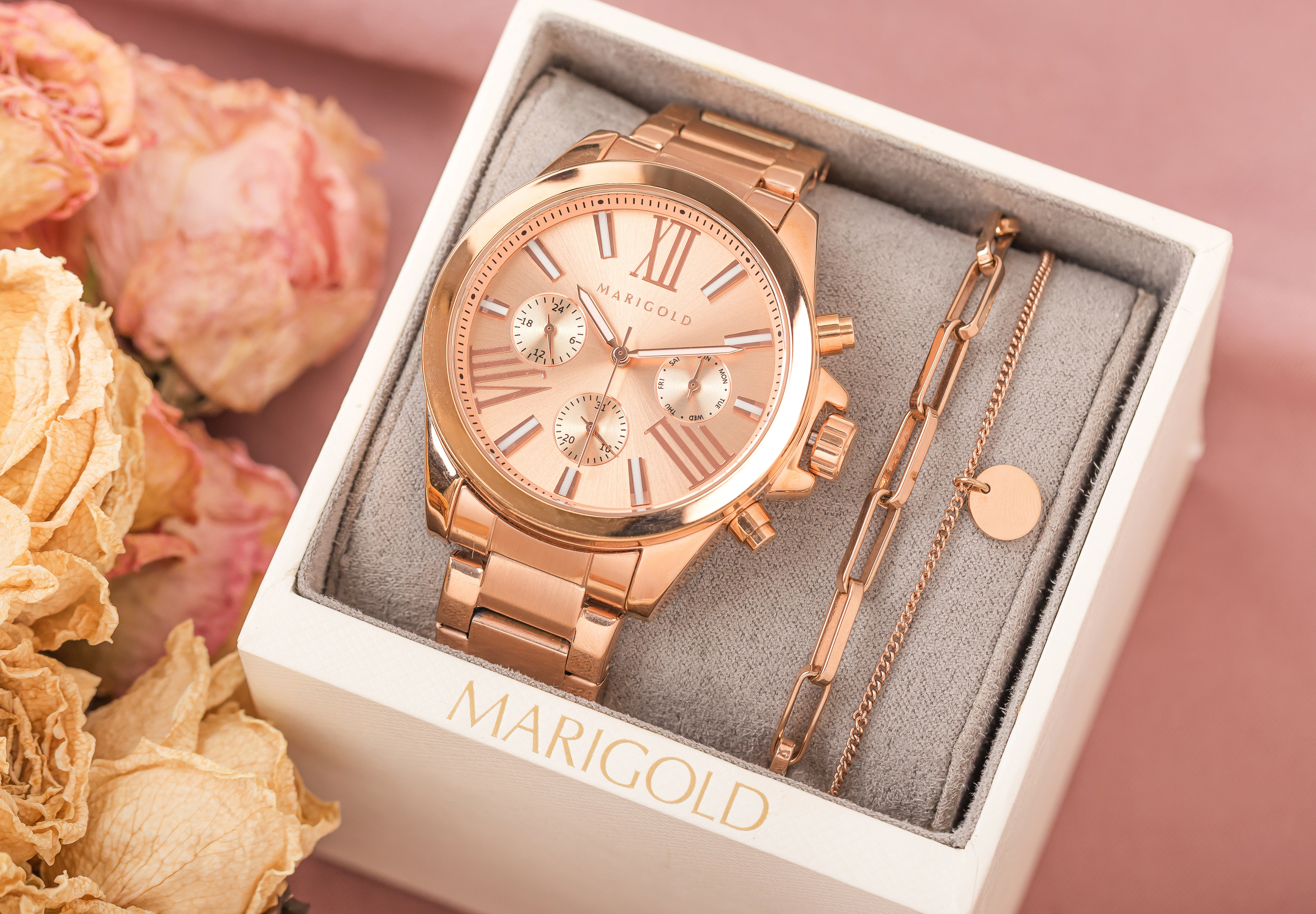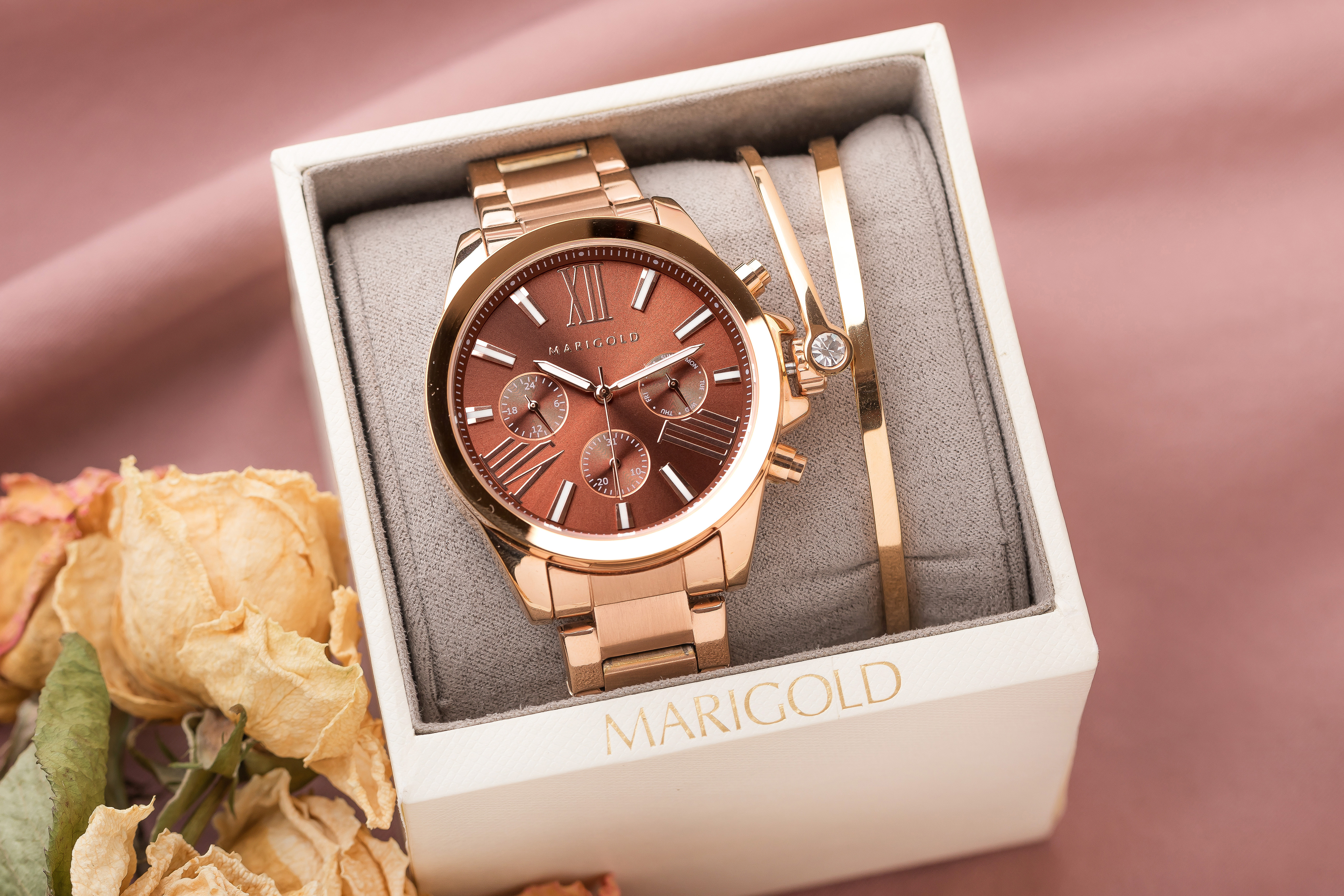 迷人的玫瑰金系列誰都想要擁有,真三眼功能搭配手鍊組合,閃亮的禮盒3千元即可擁有,自信優雅兼具,是館內高人氣最高的CP組合,送禮自用都是首選!