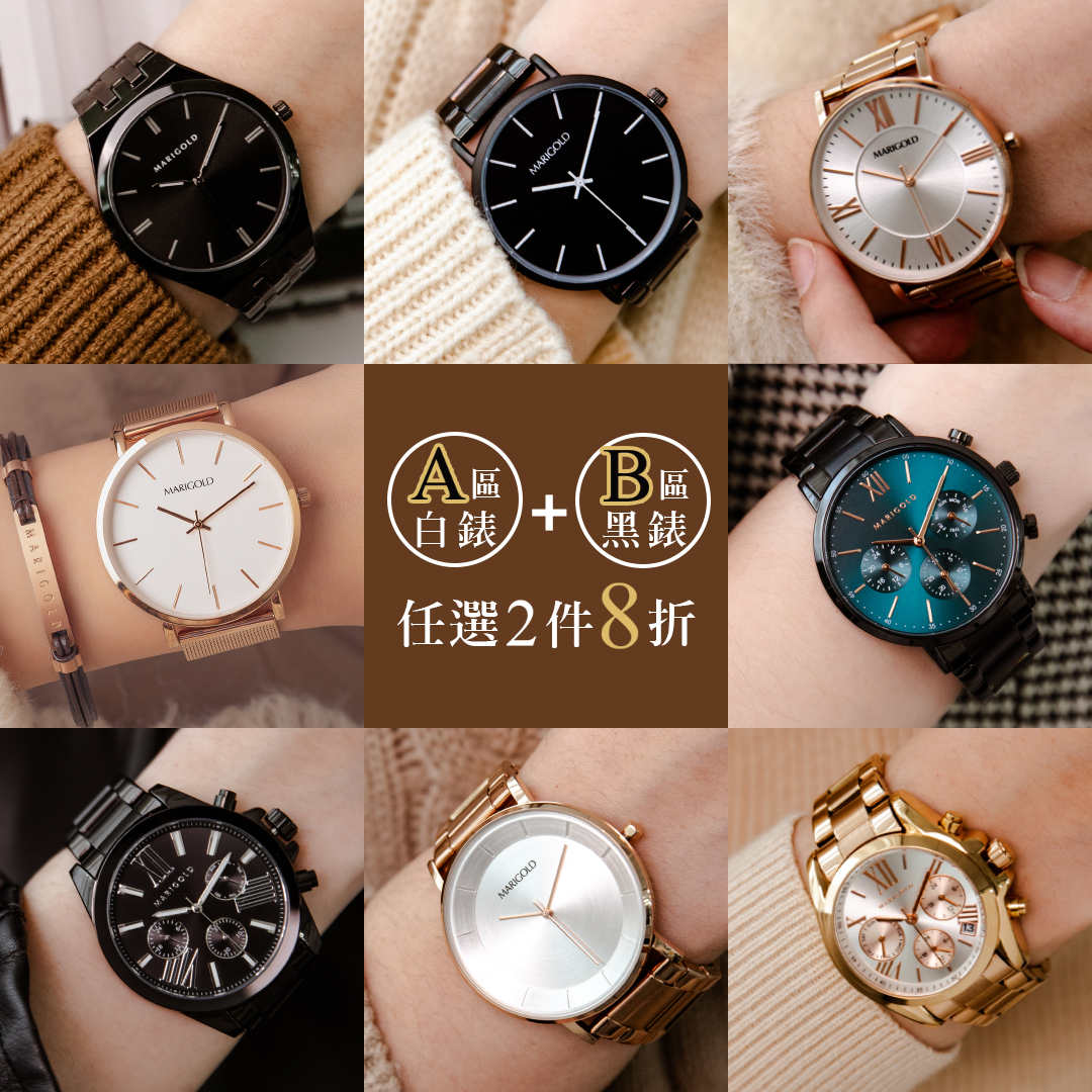 【黑白風潮】經典不敗、雙色玩美錶款!MARIGOLD限時A+B任選2件8折!