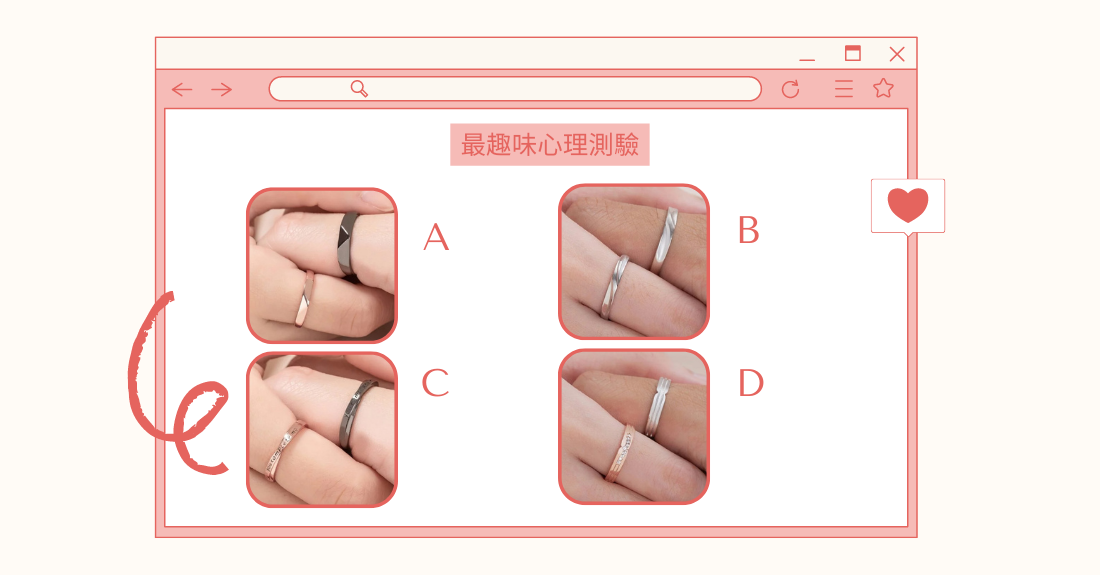 2.好久沒去遊樂園,今天心血來潮決定要去遊樂園約會,還在熱戀情的你們決定要一起戴情侶對戒 你們會怎麼選擇哪種款式一起甜蜜蜜約會?