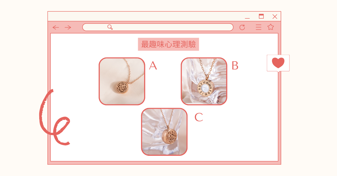 飾品是日常必備的單品,代表我們的時尚風格,請依據下列情境選出最符合的答案 依據你不同的情境選擇你想戴的飾品,測出你最吸引人的潛在性格