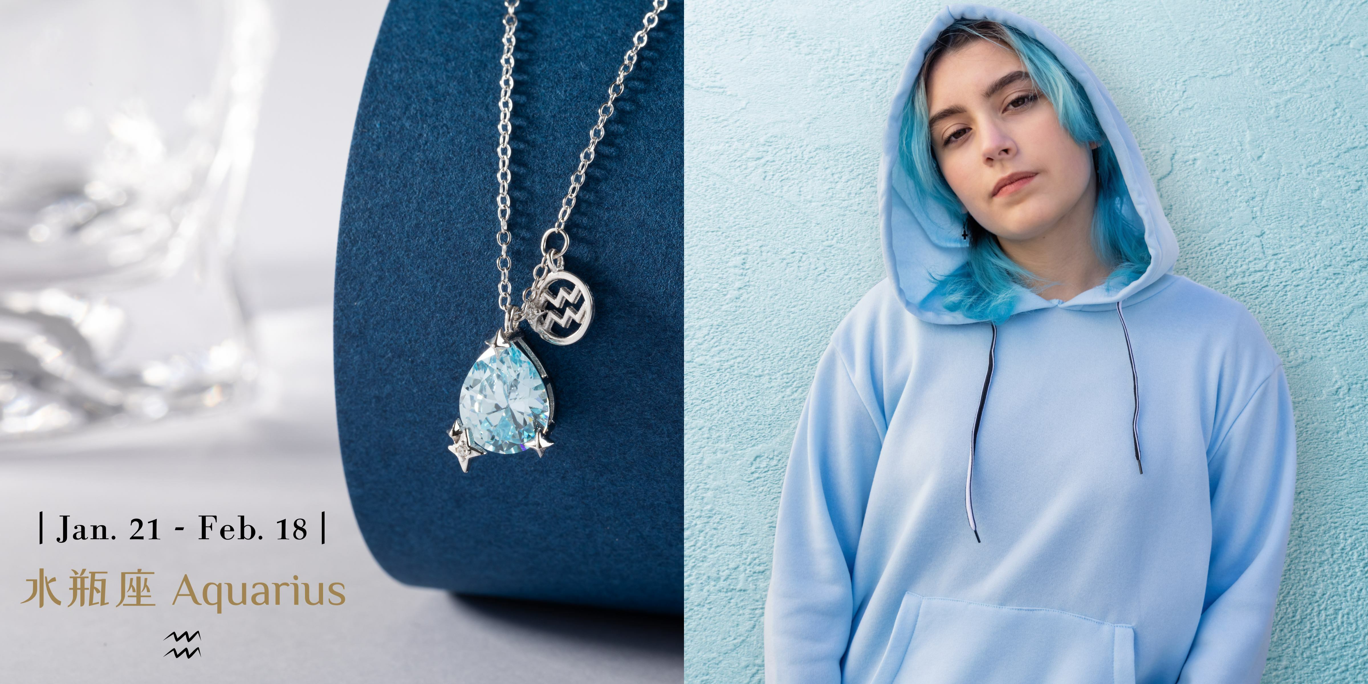 冷藍象徵聰慧、勇敢與沉著,水瓶時而熱情時而沉靜,如同水的多變又如天空般廣闊自由,是超級寶藏星座。