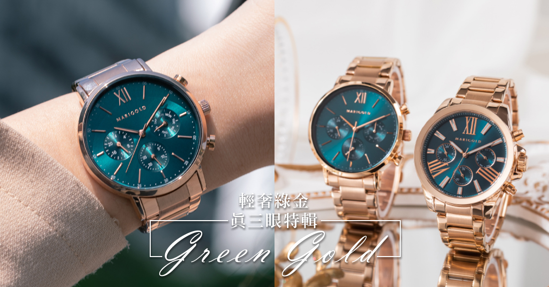 【潮人至愛】MARIGOLD獨家特調綠金色系!奢華真三眼鍊帶錶風潮再起!