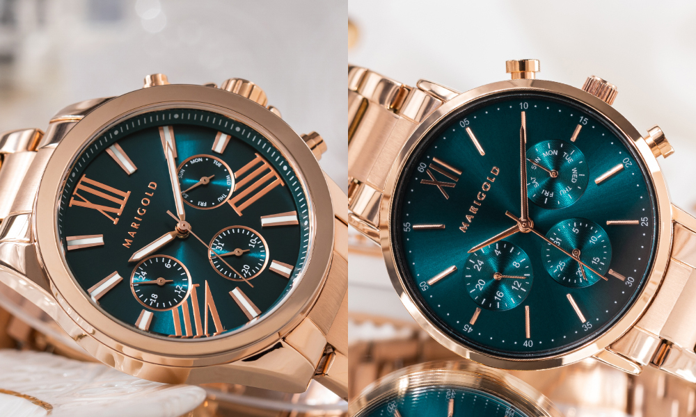 說到輕奢飾品,手錶一直是潮人心中不可或缺的重要角色!戴上一支高質感的腕錶,直接大幅提升個人品味!MARIGOLD獨家特調綠金真三眼錶款-Sparkling與Glorious系列,搭配鍊帶錶帶完美演繹奢華風格,尤其單支售價不到台幣$3000比不少功能錶更好入手,不失為小資族的奢華之選!