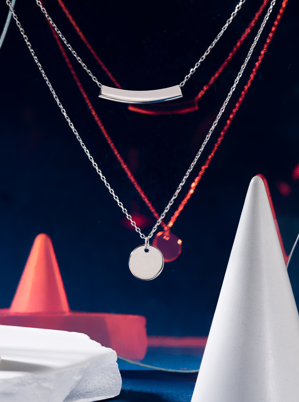 歐美感十足的亮銀系列飾品,特別推薦這款雙層設計的長項鍊!較短的彎管搭配圓牌,打造線與面的層次感,戴上身立即拉長線條、顯V臉!