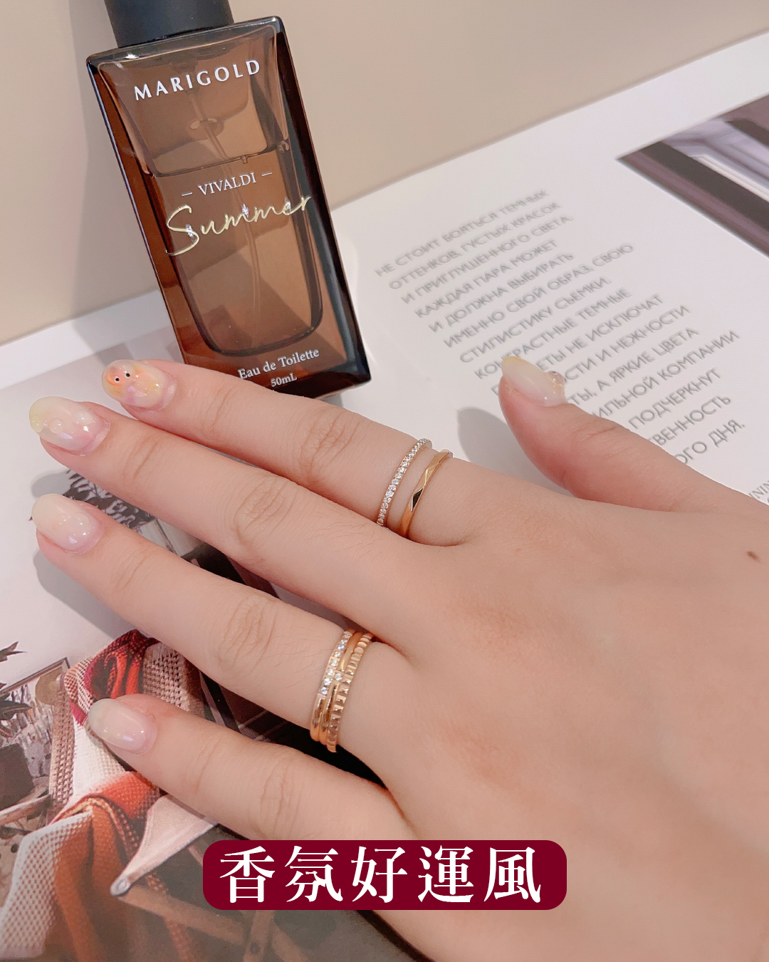 最後推薦香氛好運風!噴上MARIGOLD全新推出的VIVALDI四季精油香水再搭上戒指配戴,馬上好運相隨超有感~特別推戒指戴在食指與無名指,招財同時招桃花、讓你人財一次擁有!