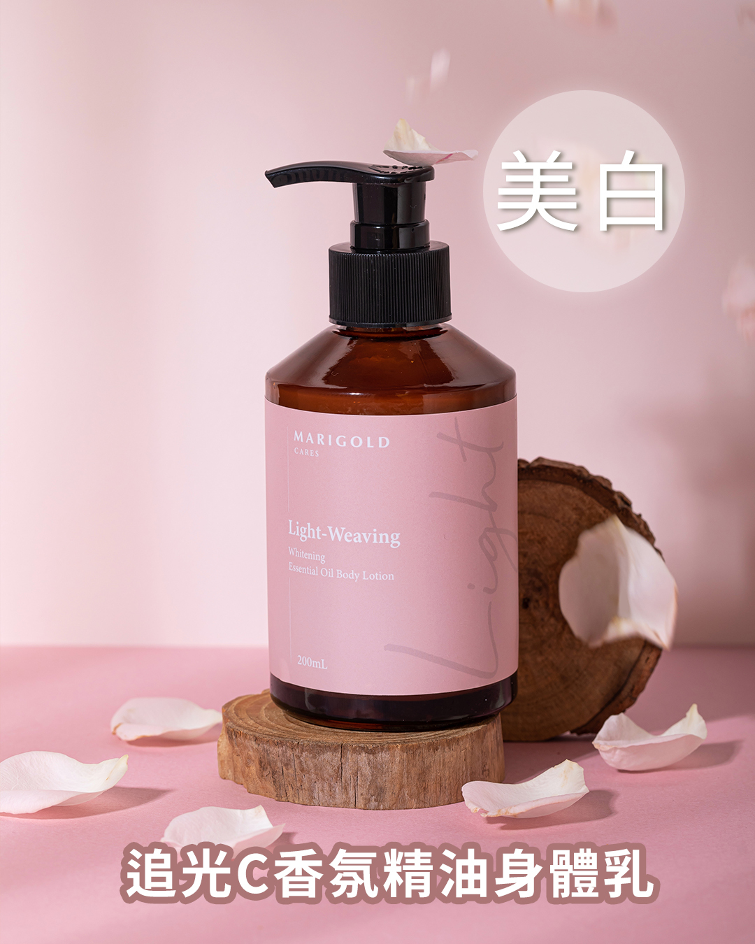 除了有效的美白成分外,追光C香氛精油身體乳特別添加了「天竺葵精油」,塗抹乳液後變會散發優雅的木質玫瑰香~讓你同時擁有高級感的細緻肌膚和馥郁的迷人香氣!