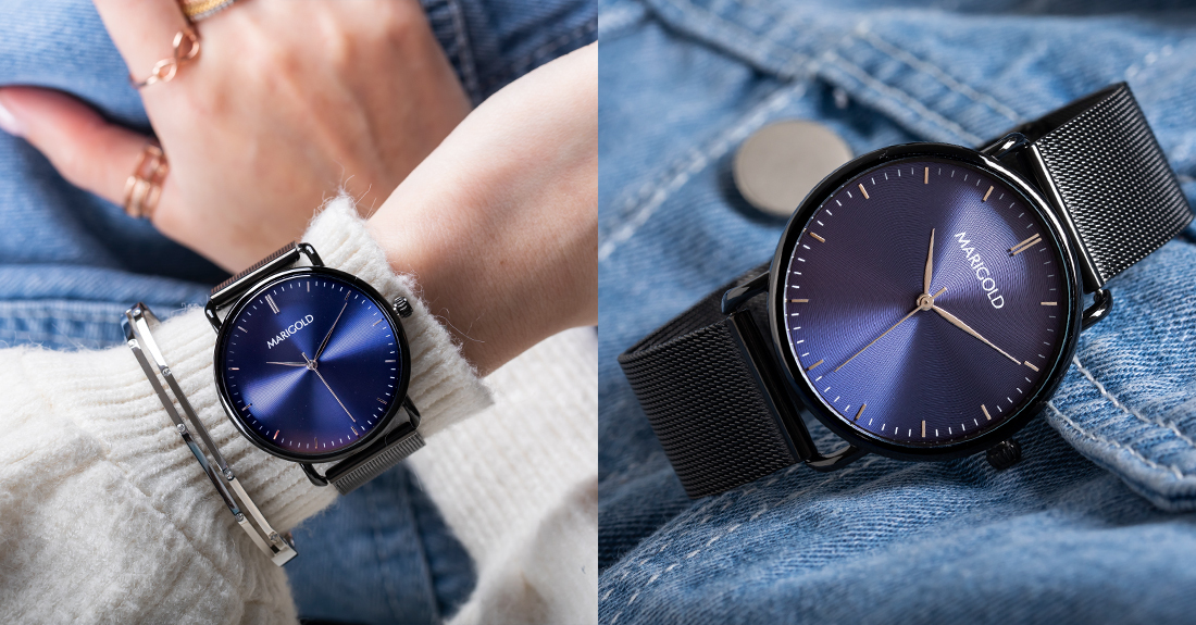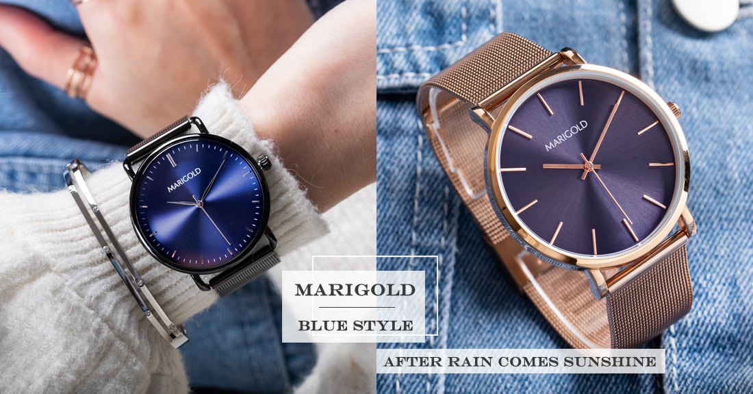 說到2020大勢色「藍色」絕對焦點之一,這樣褒貶觀感都有的顏色對你來說是什麼感覺呢?有人覺得藍色帶來憂鬱、絕望,也有人覺得藍色給人可靠、沉靜的意象。而MARIGOLD獨家特調出「雨過天青」的藍,與眾不同的色調比沉默的深藍淺一些、又比活潑的淺藍暗一點,所帶來的是在狂風暴雨後、天空放晴那瞬間所綻放的美麗與希望,今天就來分享MARIGOLD人氣特調藍錶款,感受這「雨過天青」的風和明媚!