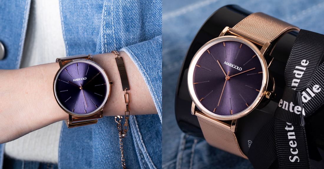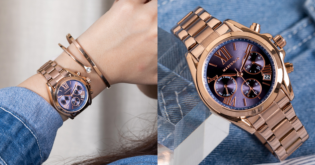 MARIGOLD Rose系列錶款以大刻度及炫光設計象徵玫瑰的片片花瓣與那迷人的盛放模樣,錶盤底色採用MARIGOLD特調藍凸顯整支錶的不凡與高雅,猶如藍玫瑰的花語「珍貴、稀有的愛」,將生活中的難能可貴牢牢戴在手上,深深記住黑暗後放晴的動人剎那。