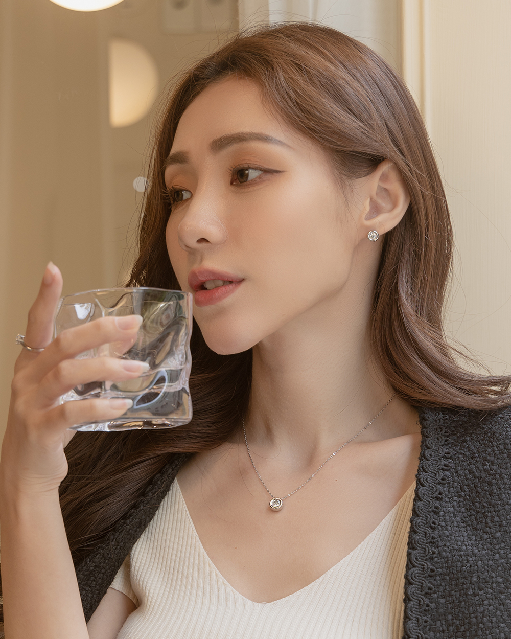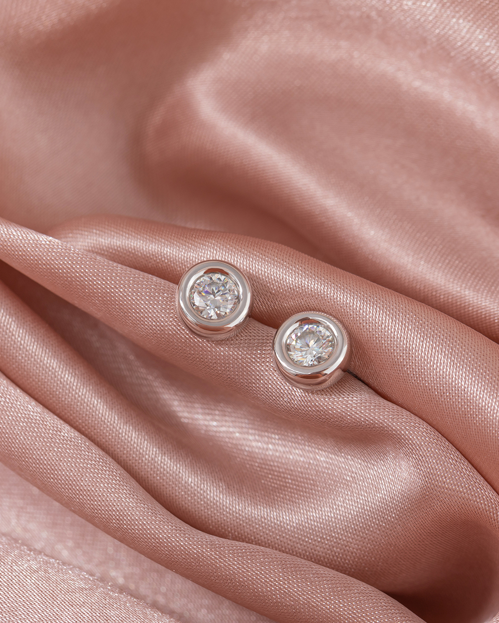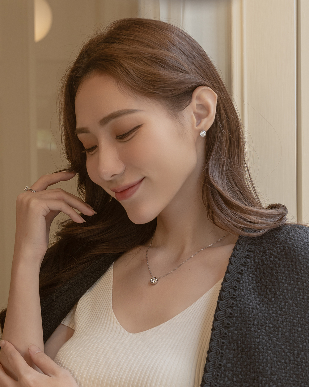 包鑲單鑽925純銀莫桑鑽耳環-銀