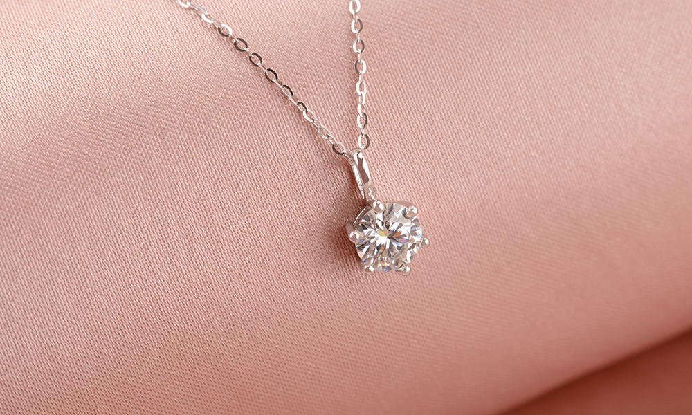 星彩之吻925純銀6爪莫桑鑽項鍊-白