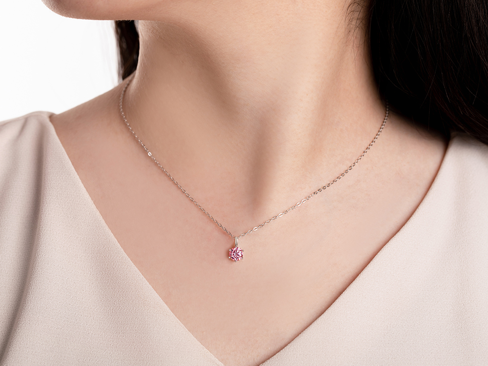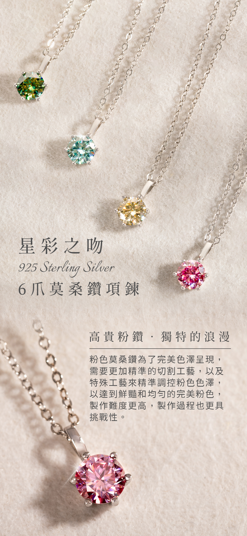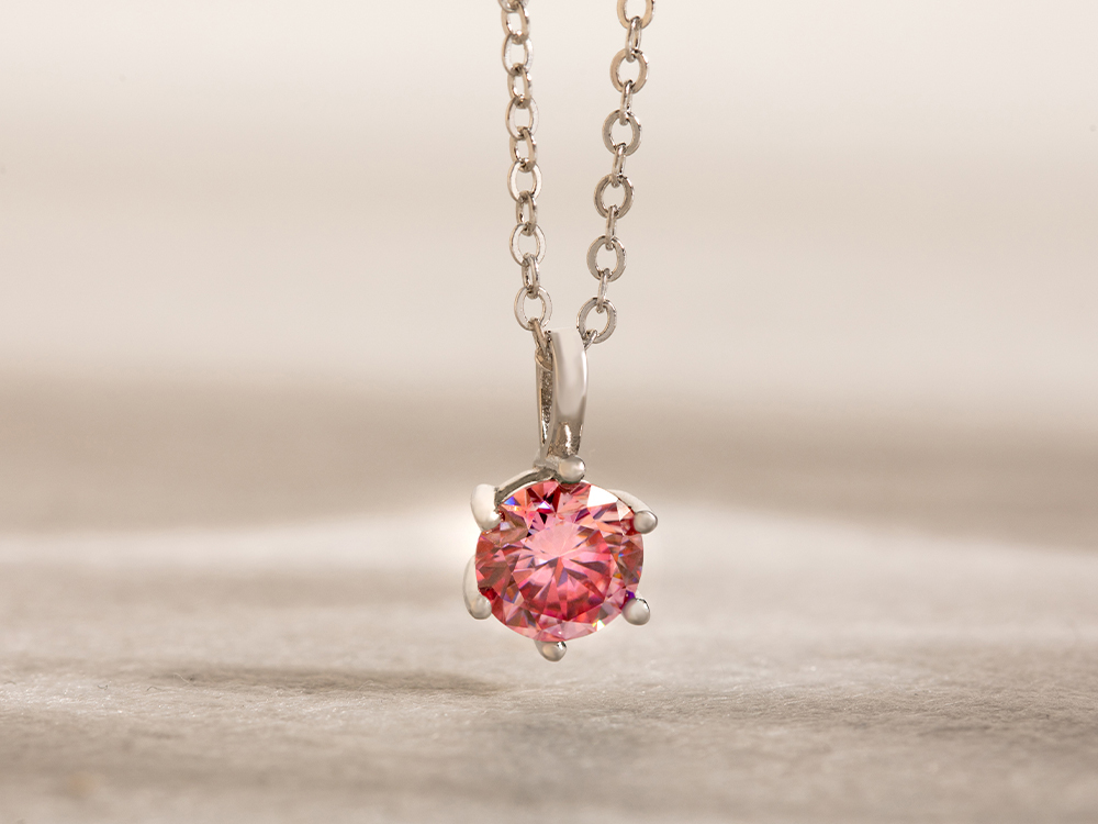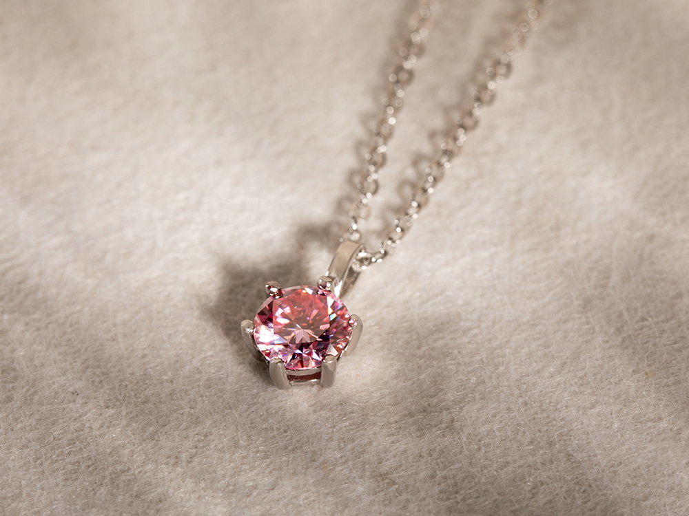 星彩之吻925純銀6爪莫桑鑽項鍊-粉