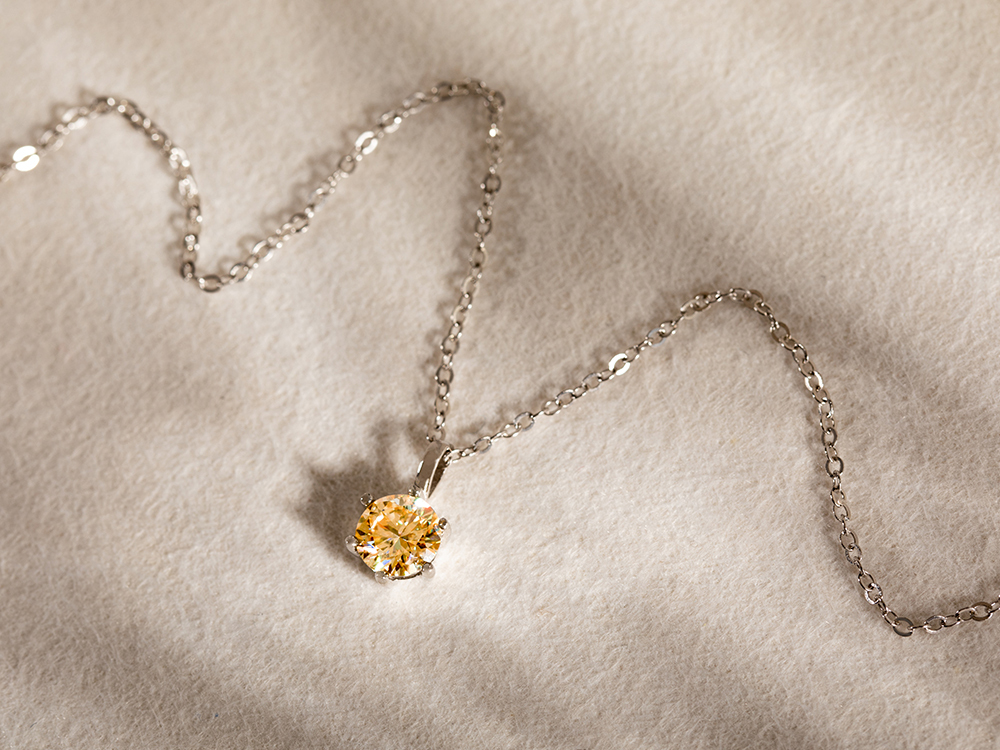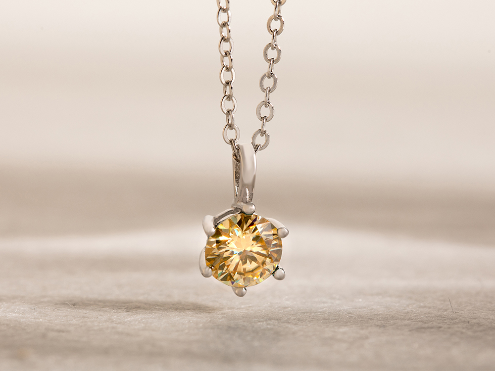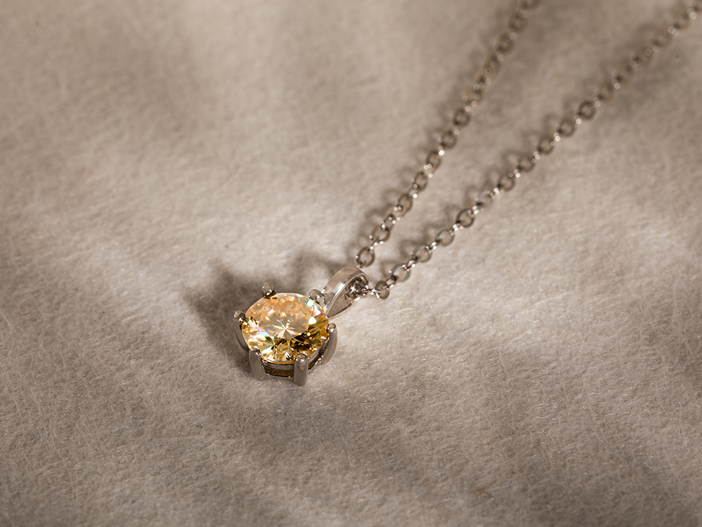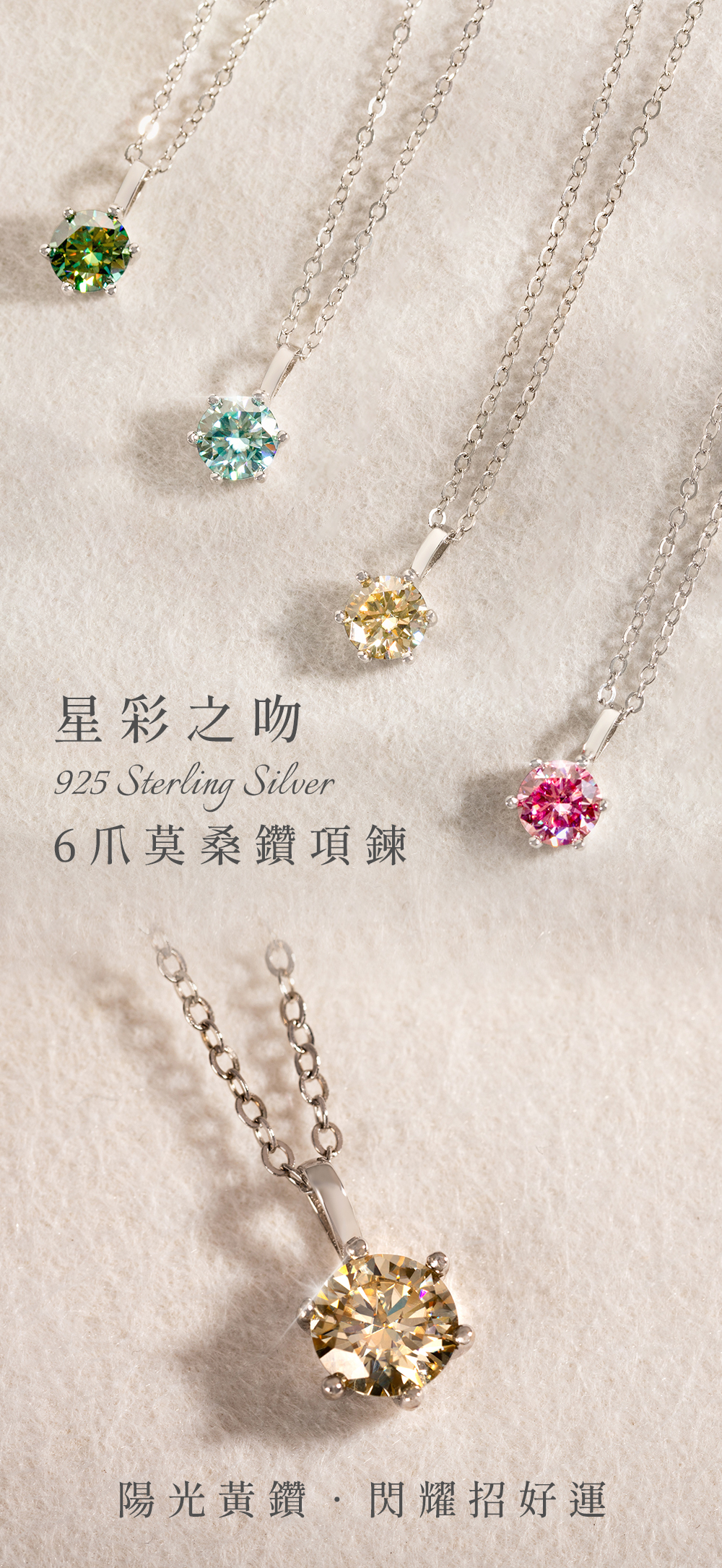 星彩之吻925純銀6爪莫桑鑽項鍊-黃
