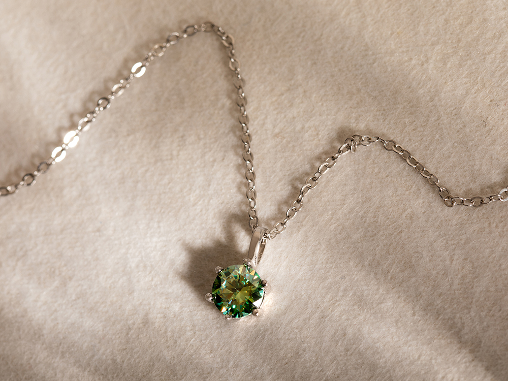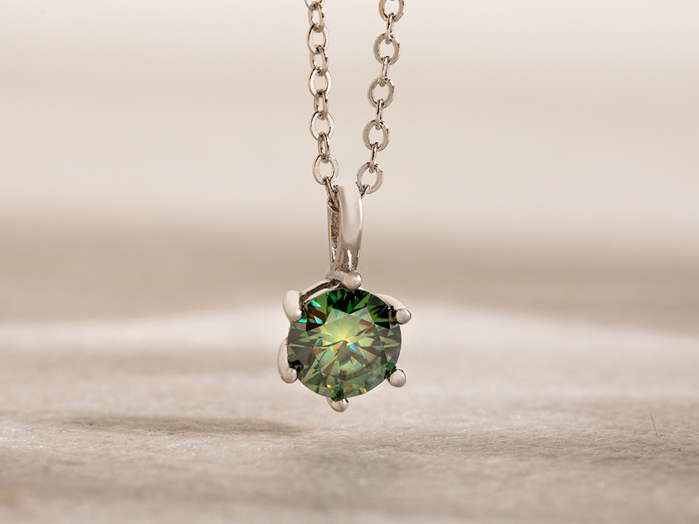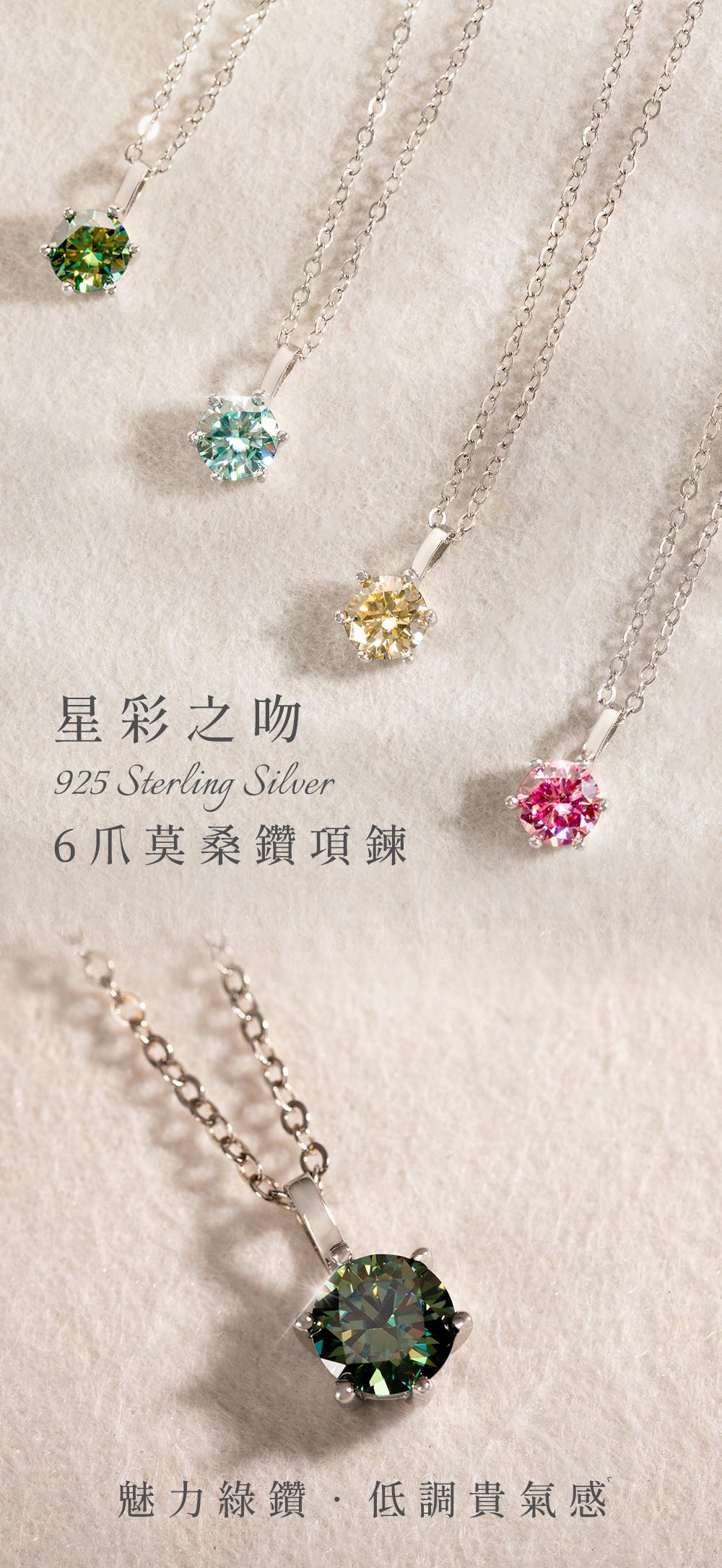 星彩之吻925純銀6爪莫桑鑽項鍊-綠