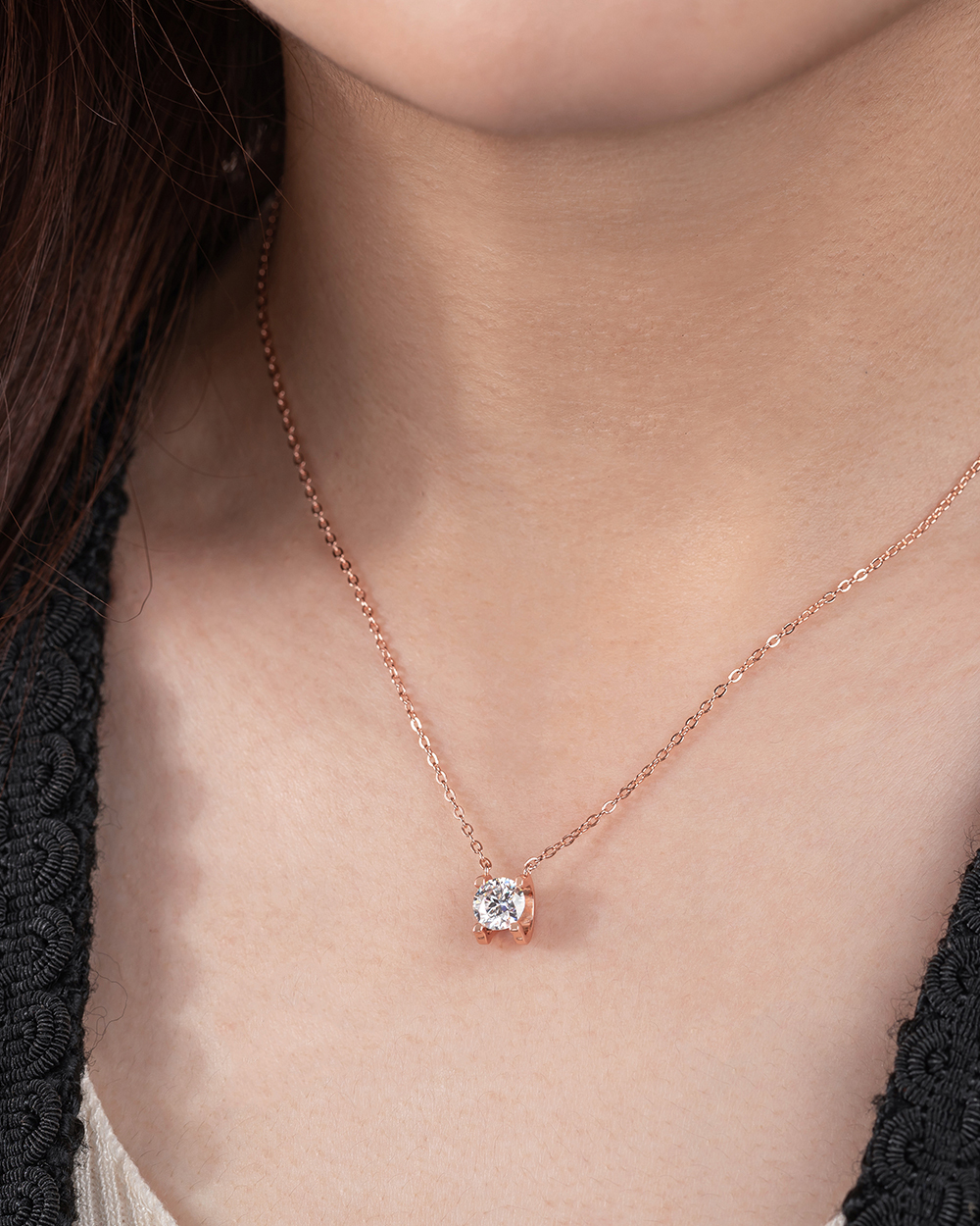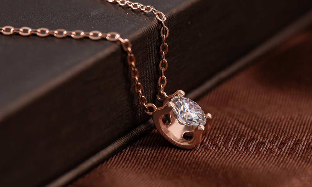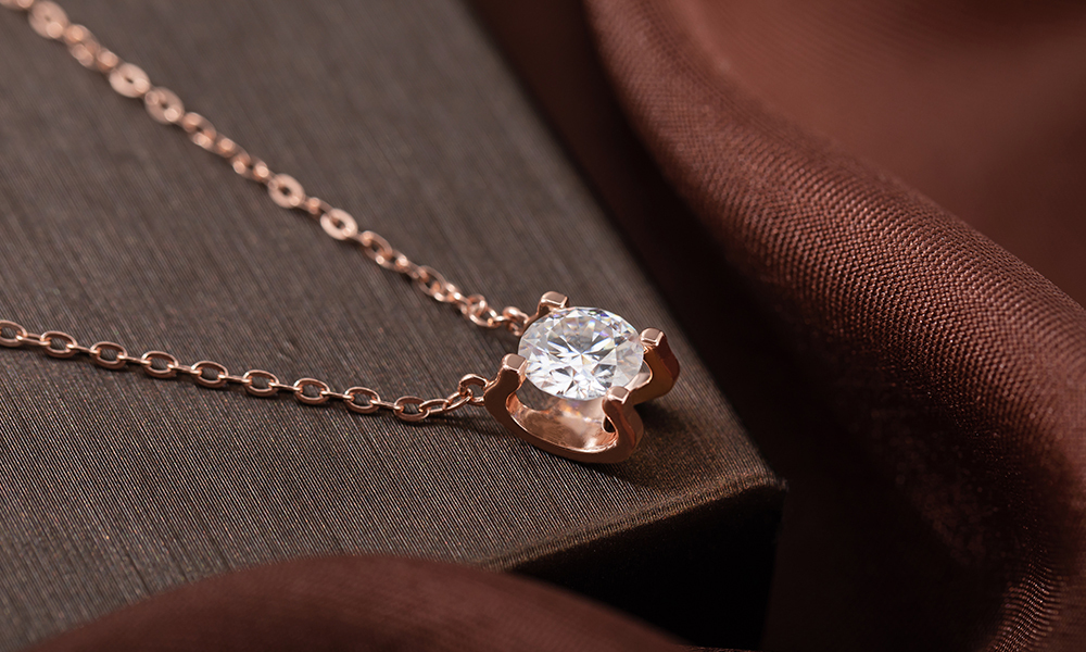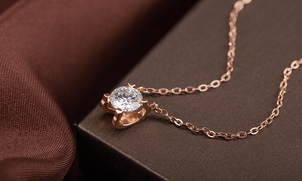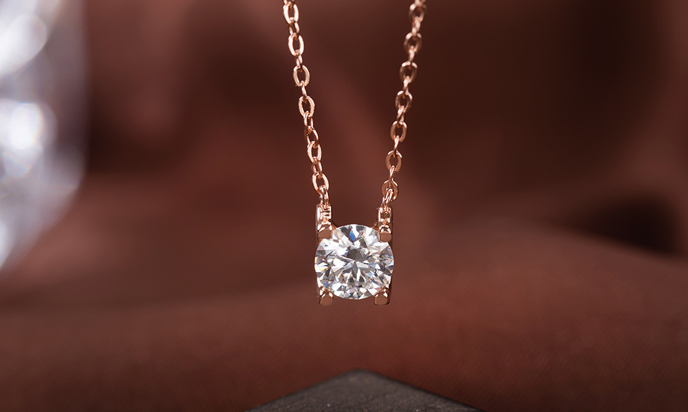 日夜星辰925純銀莫桑鑽項鍊-玫瑰金