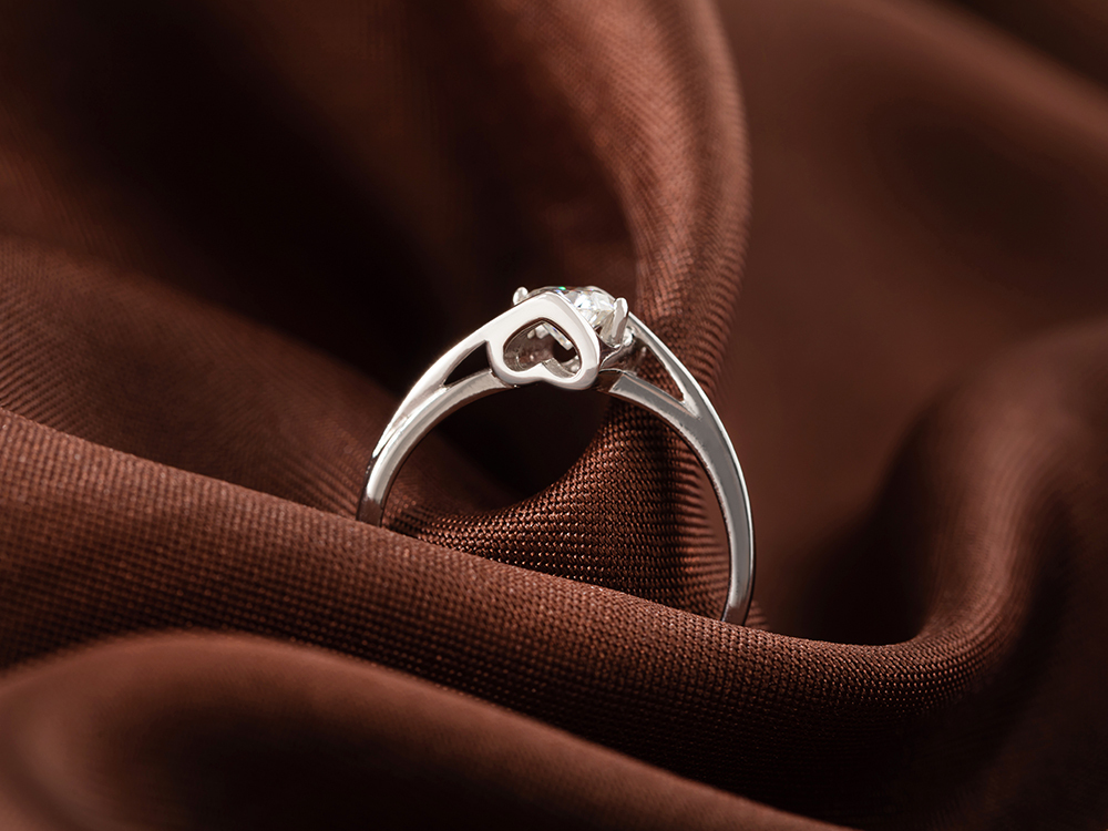 戒指的側邊也藏著驚喜,鏤空愛心巧妙地融入戒台,