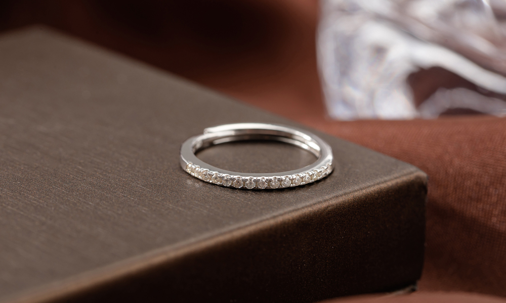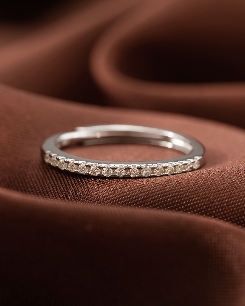 煙雨飄渺925純銀莫桑鑽可調式戒指-銀