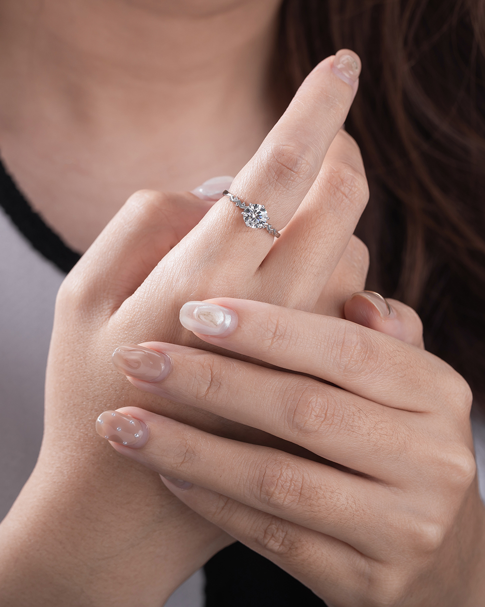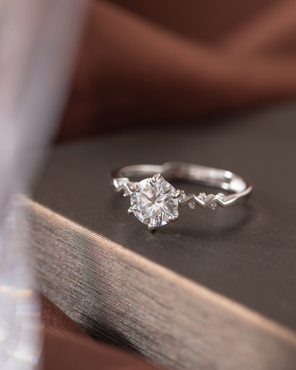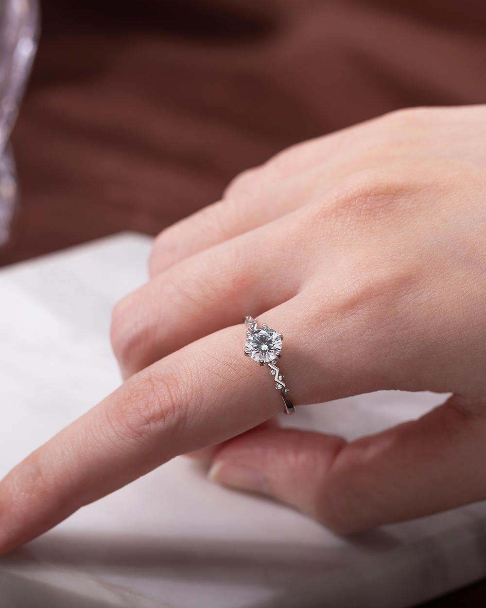 星光漫漫925純銀6爪莫桑鑽可調式戒指-銀