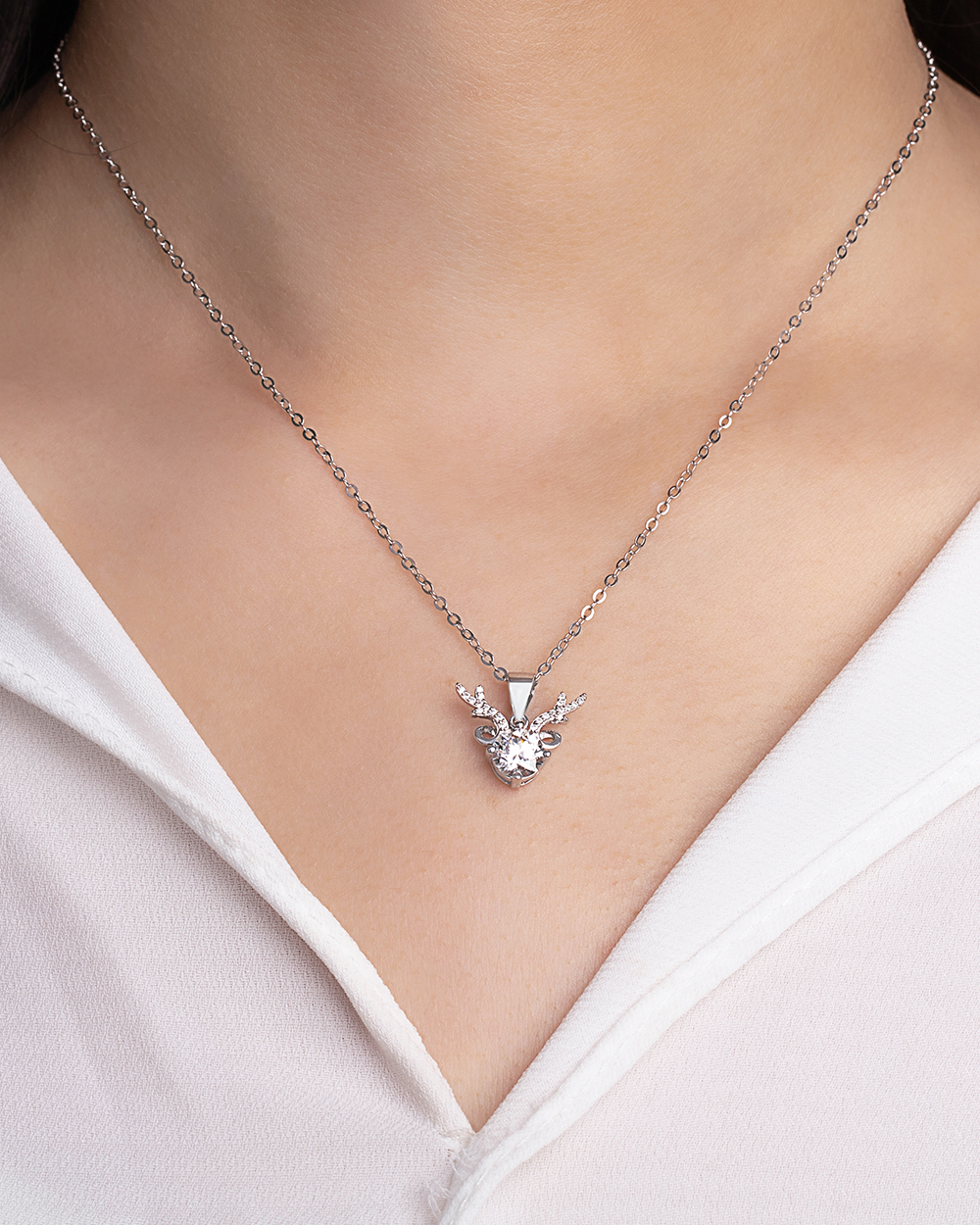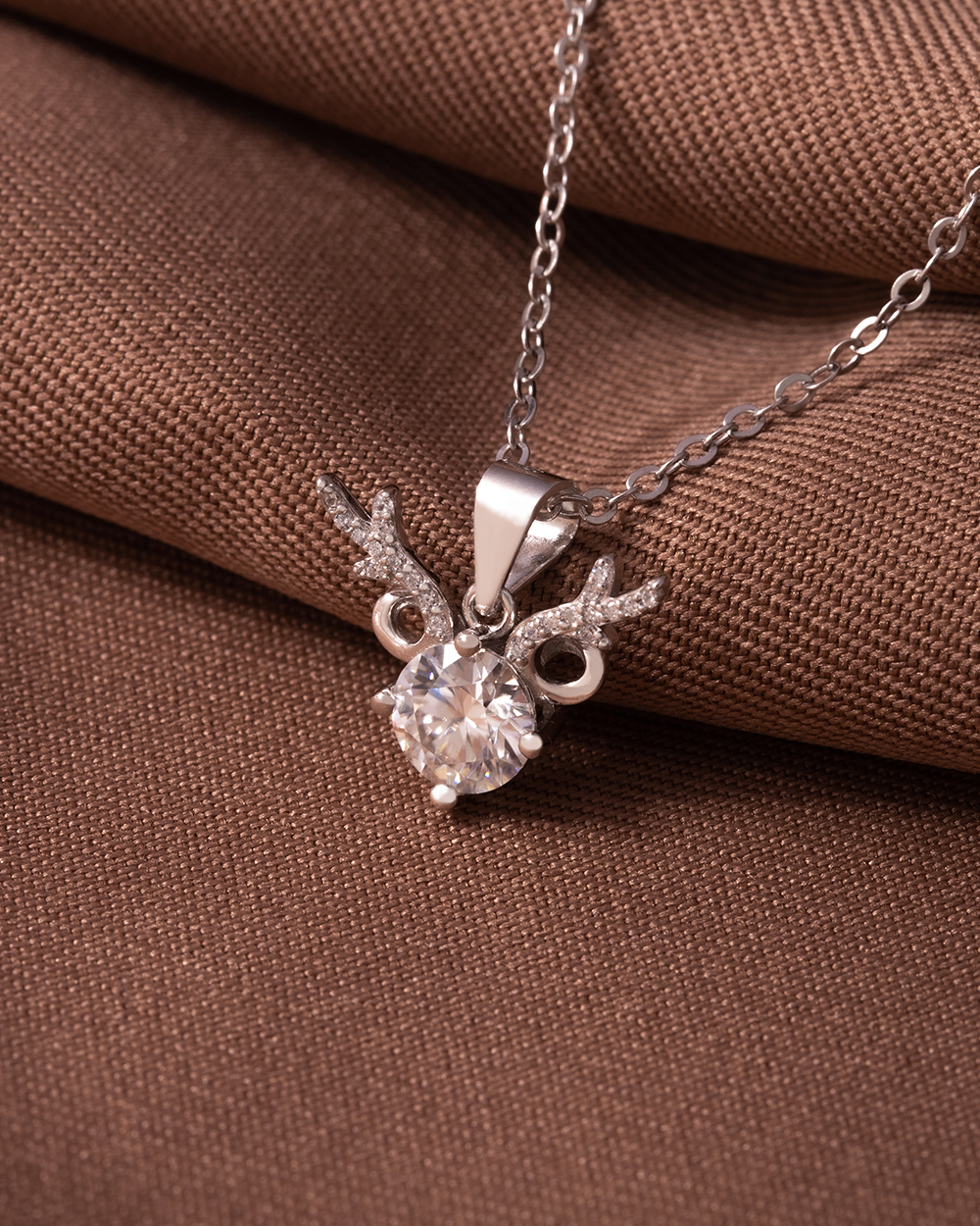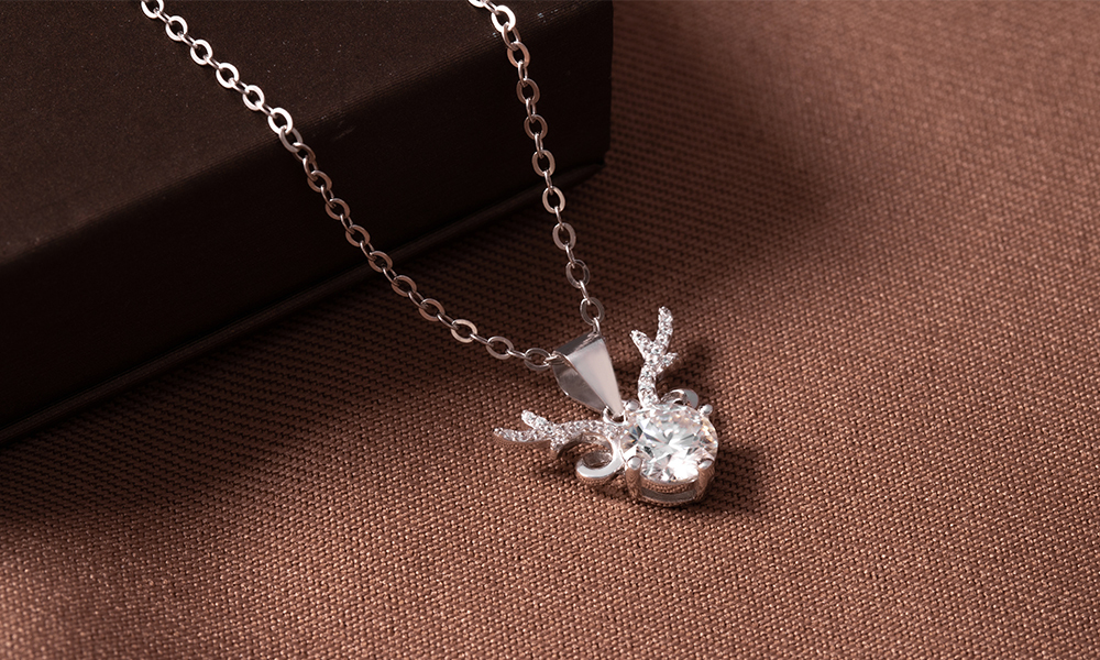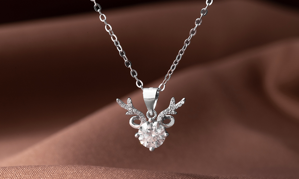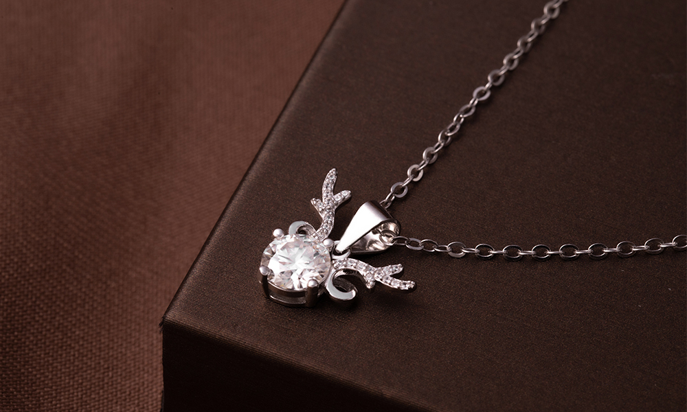 麋鹿925純銀莫桑鑽項鍊-銀