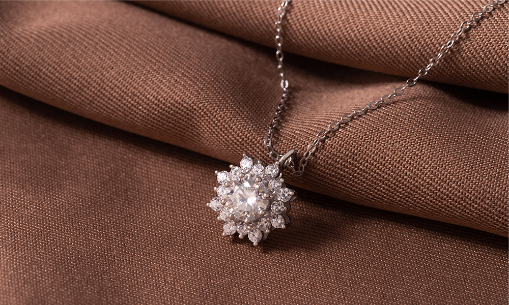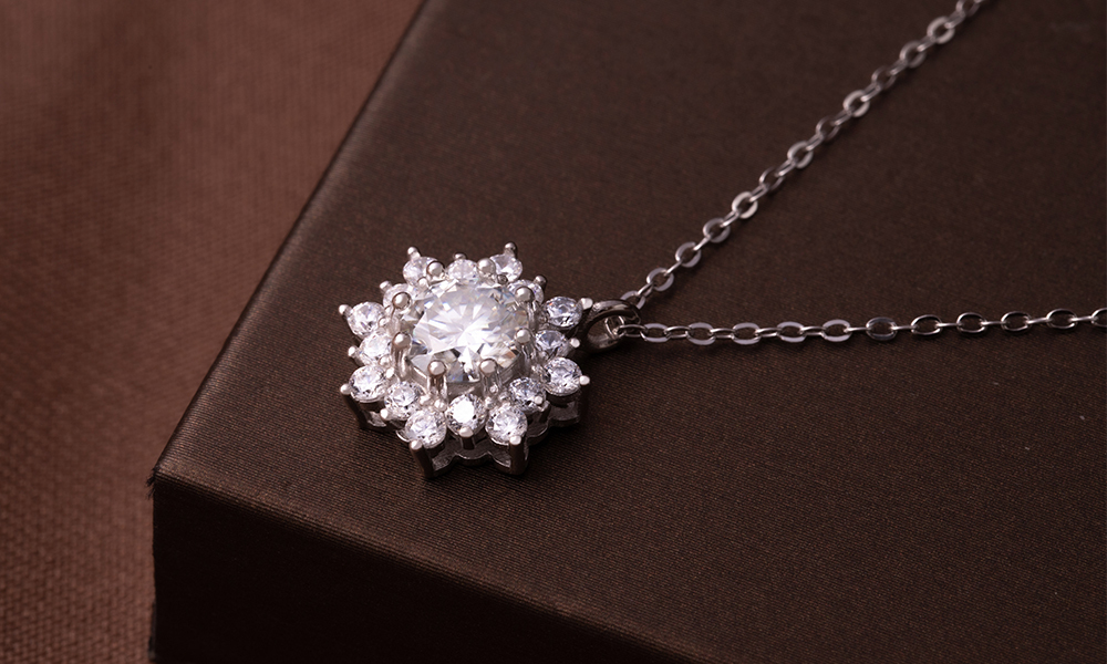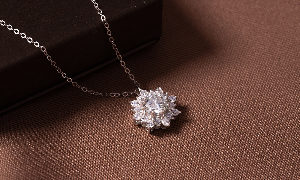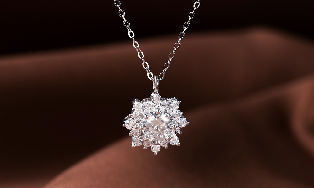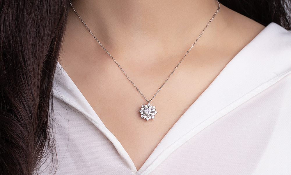 白雪冰花925純銀莫桑鑽項鍊-銀