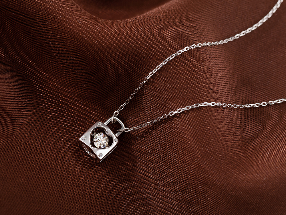 心鎖鏤空925純銀莫桑鑽項鍊-銀