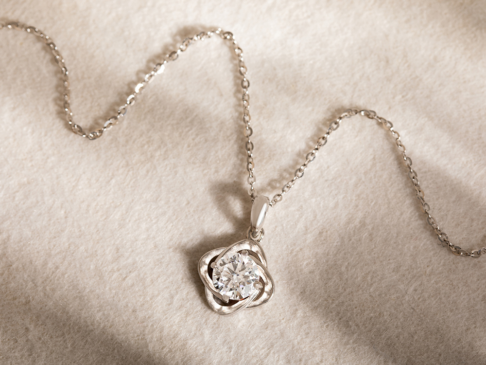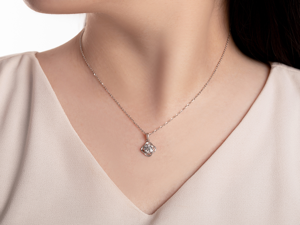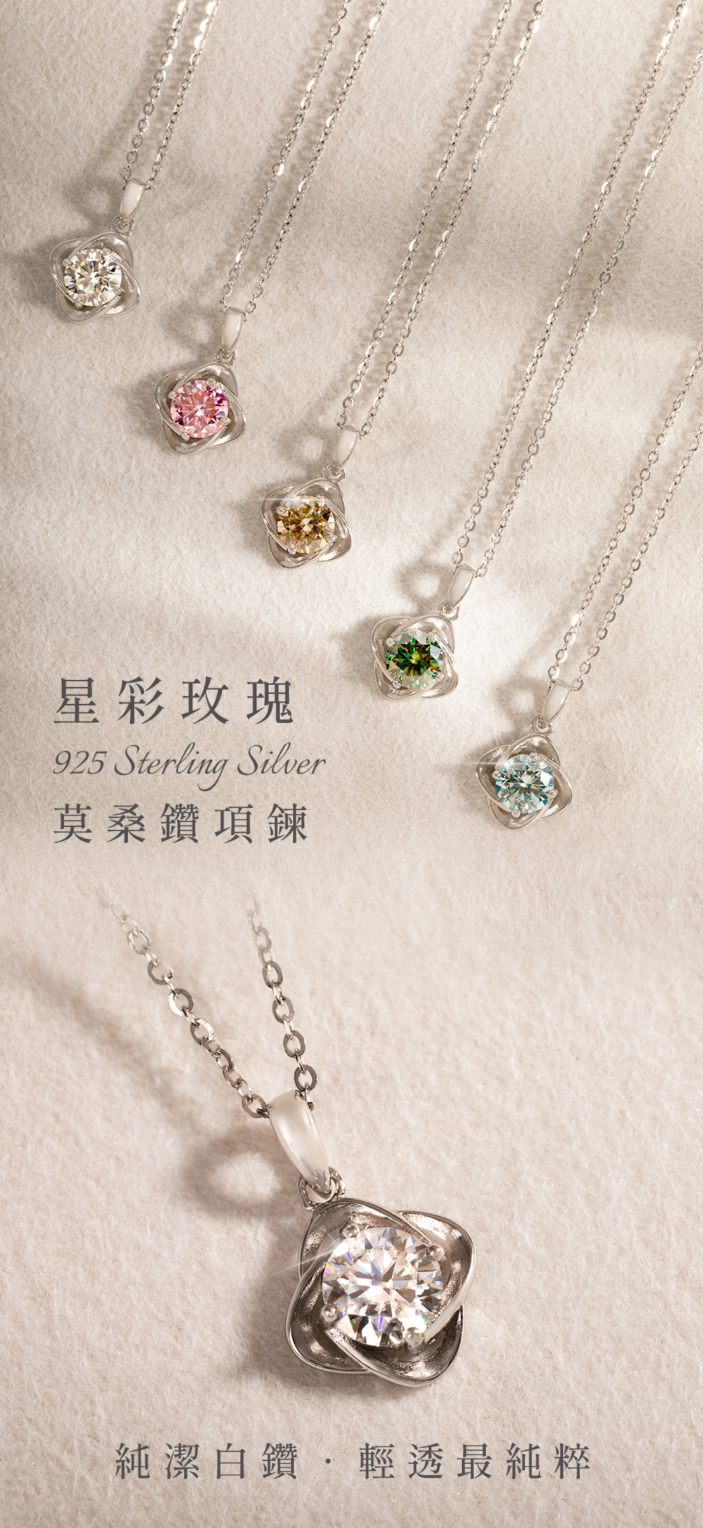 星彩玫瑰925純銀莫桑鑽項鍊-白