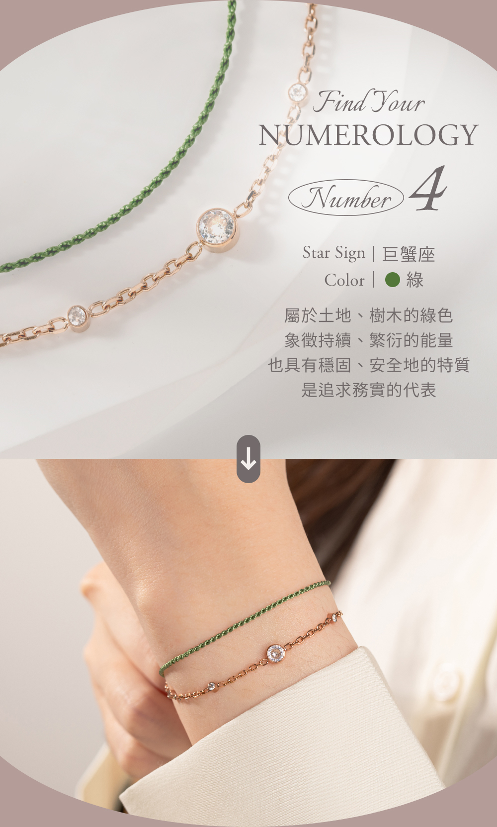 生命靈數No.4執行數 ‧開運鑲鑽款手鍊-綠