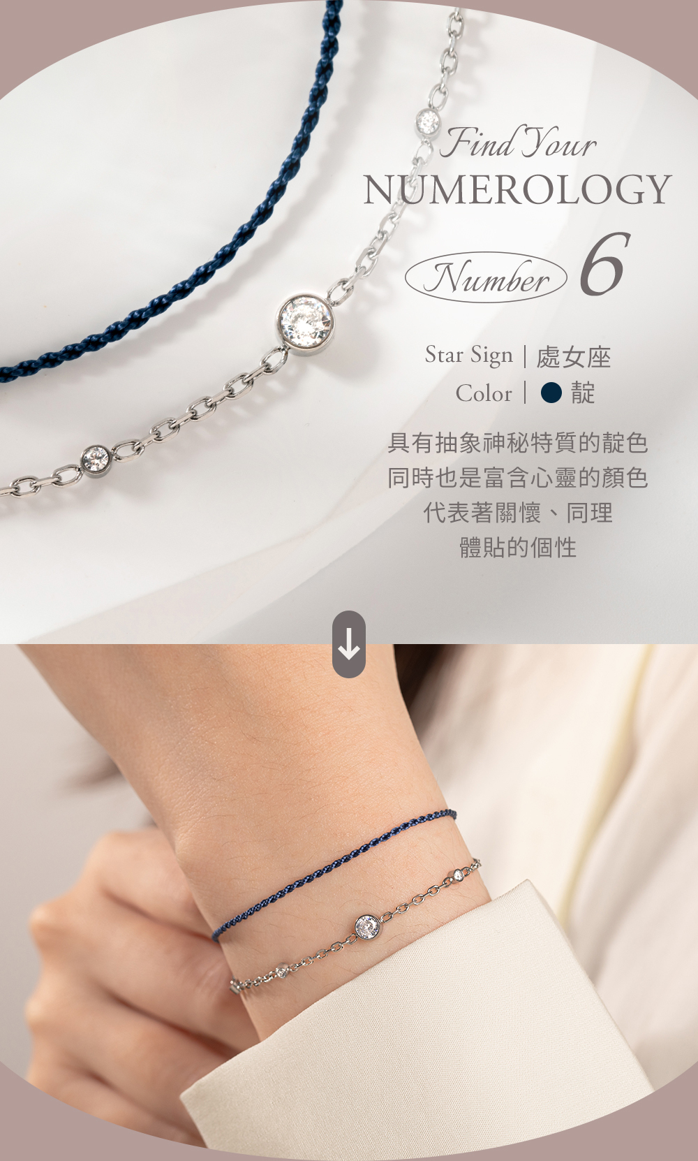 生命靈數No.6奉獻數 ‧開運鑲鑽款手鍊-靛