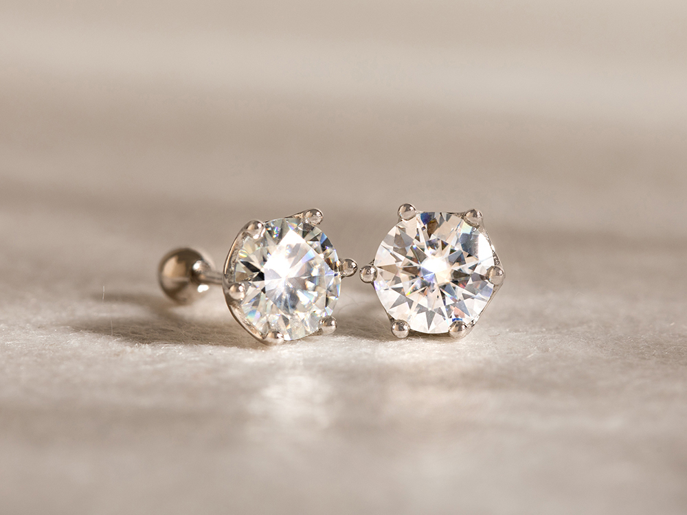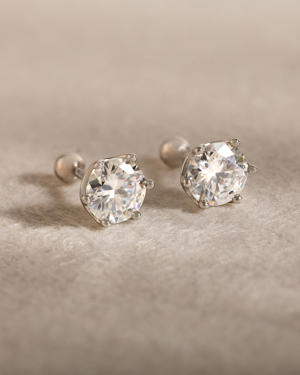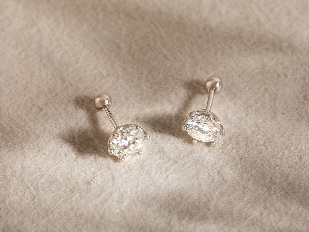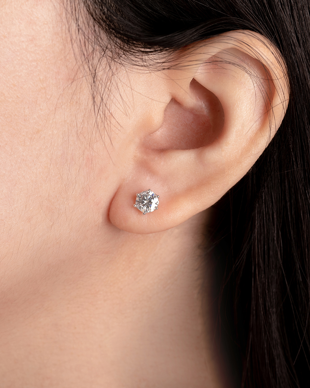 純白之吻925純銀6爪莫桑鑽轉珠耳環-銀