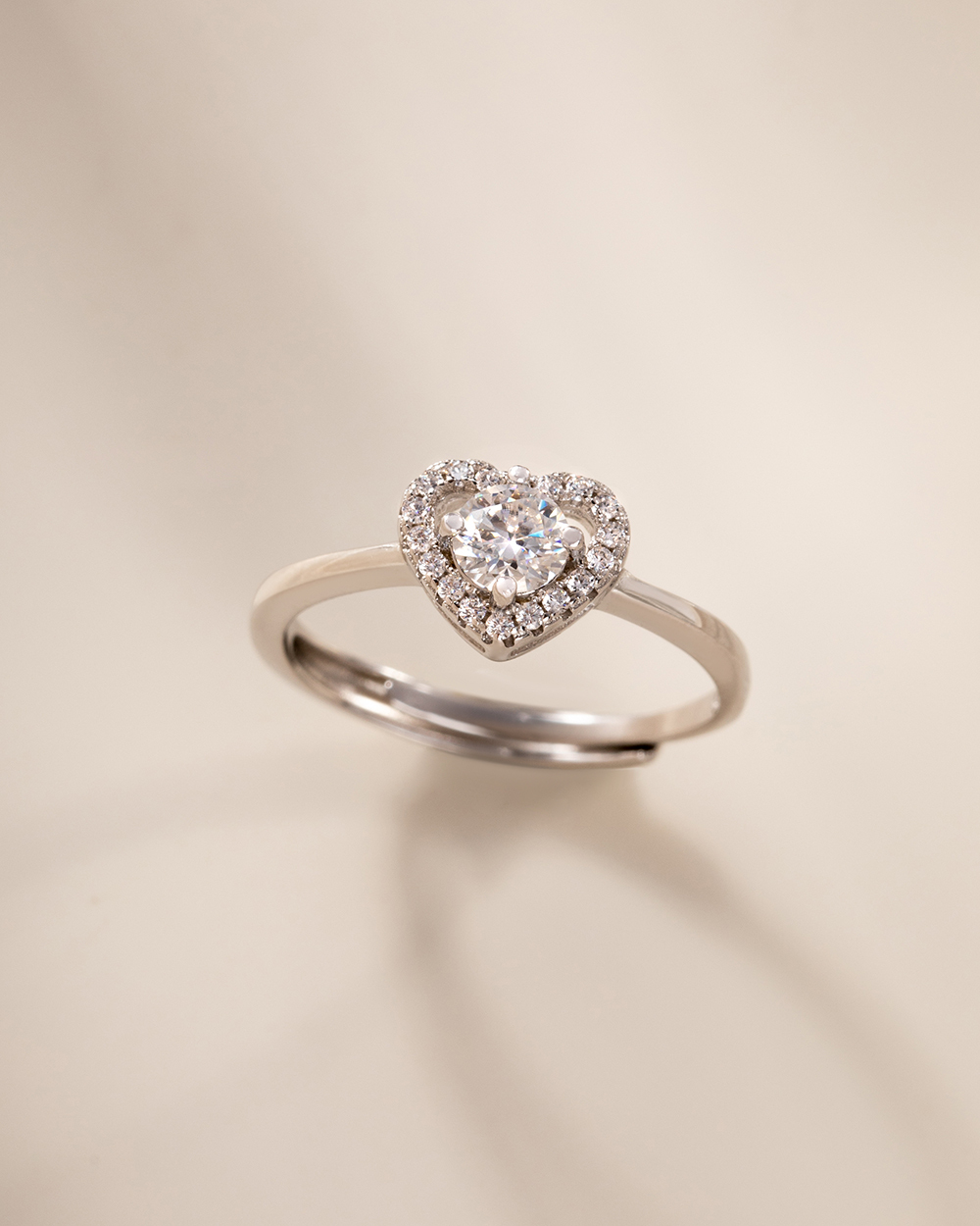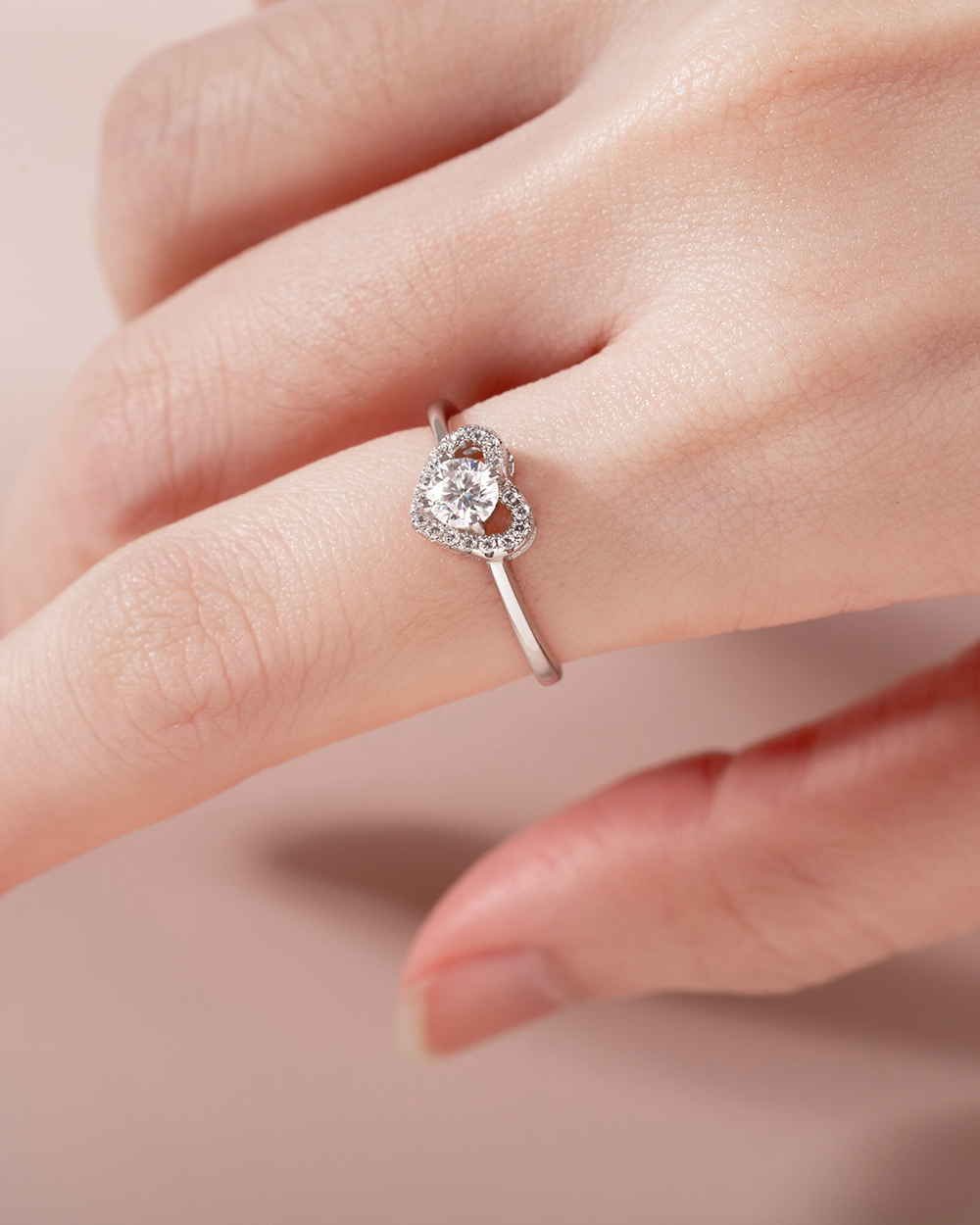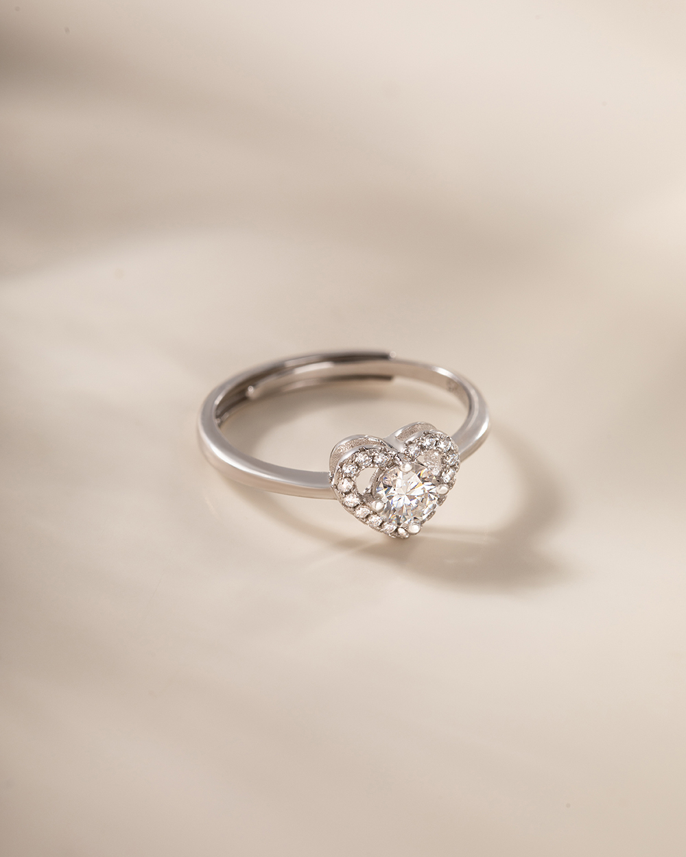 閃耀真愛925純銀莫桑鑽可調式戒指-銀