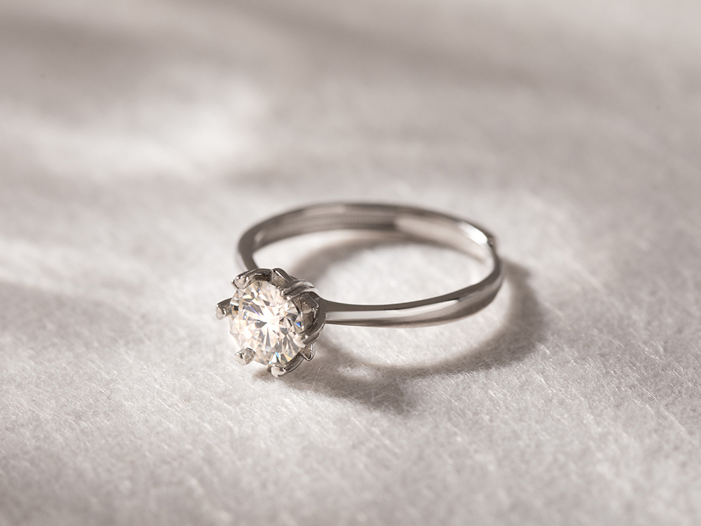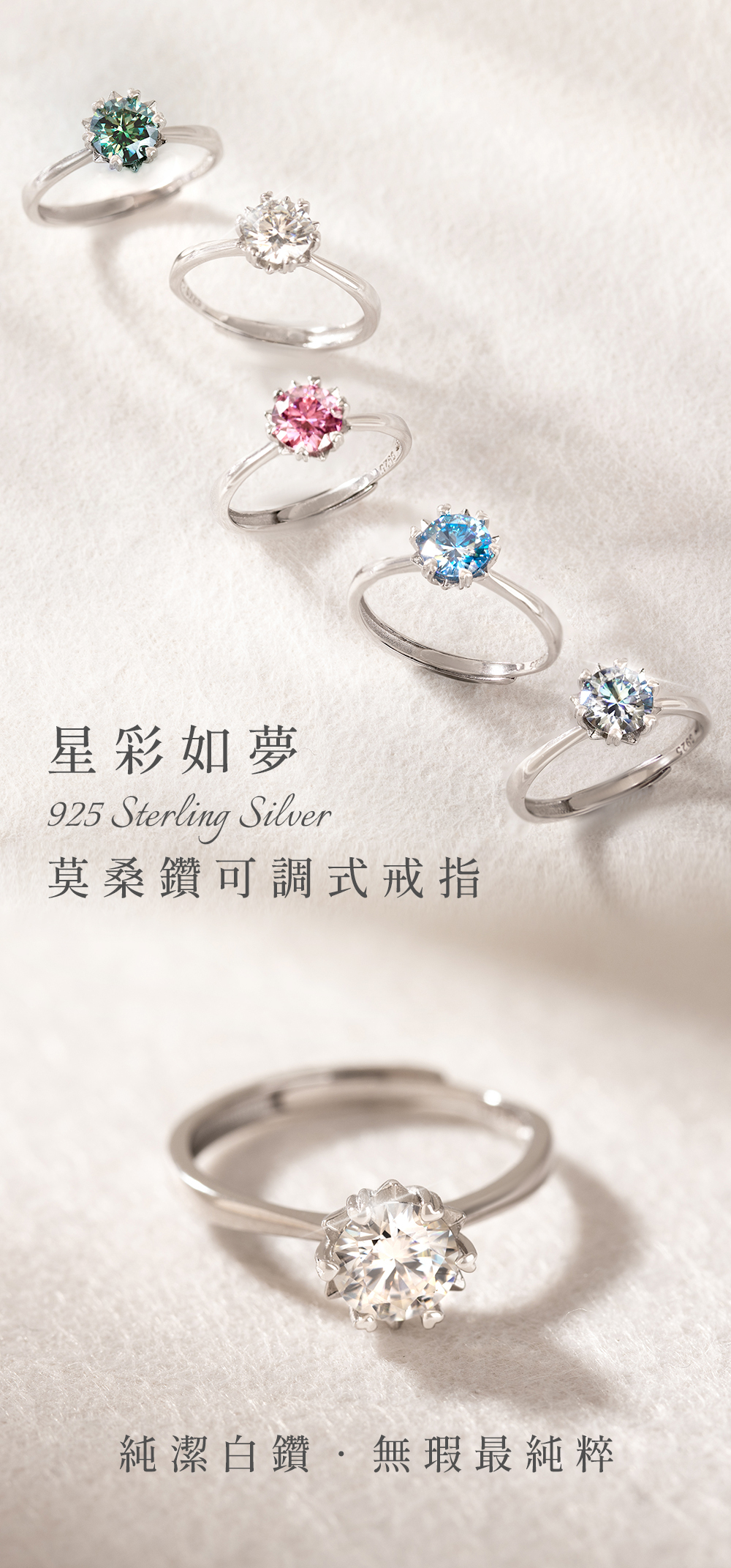 星彩如夢925純銀莫桑鑽可調式戒指-白