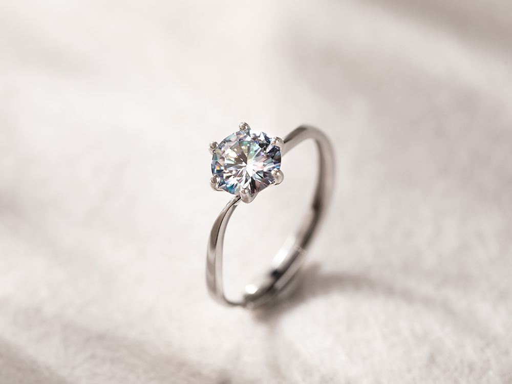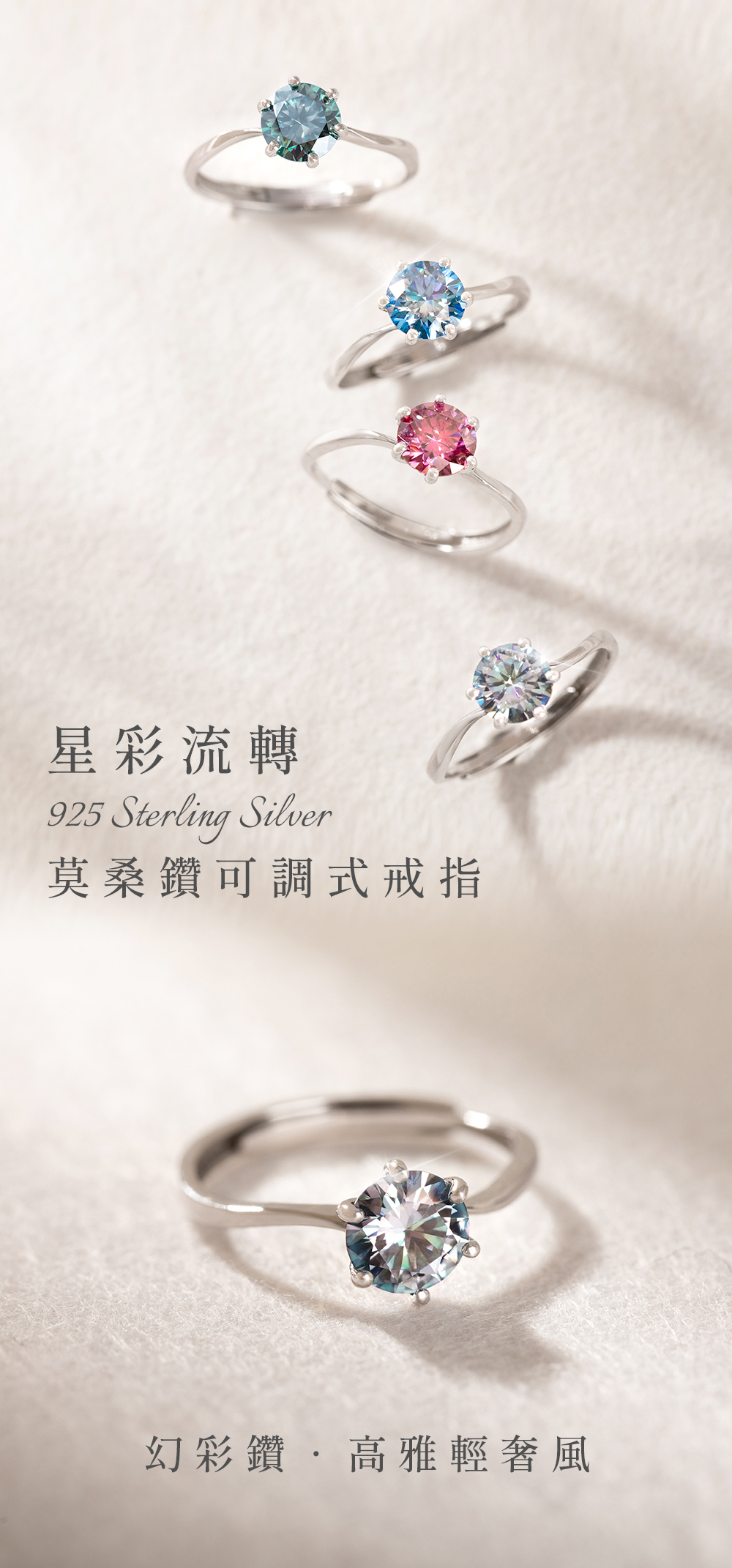 星彩流轉925純銀莫桑鑽可調式戒指-幻彩