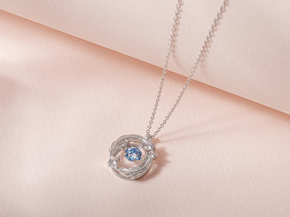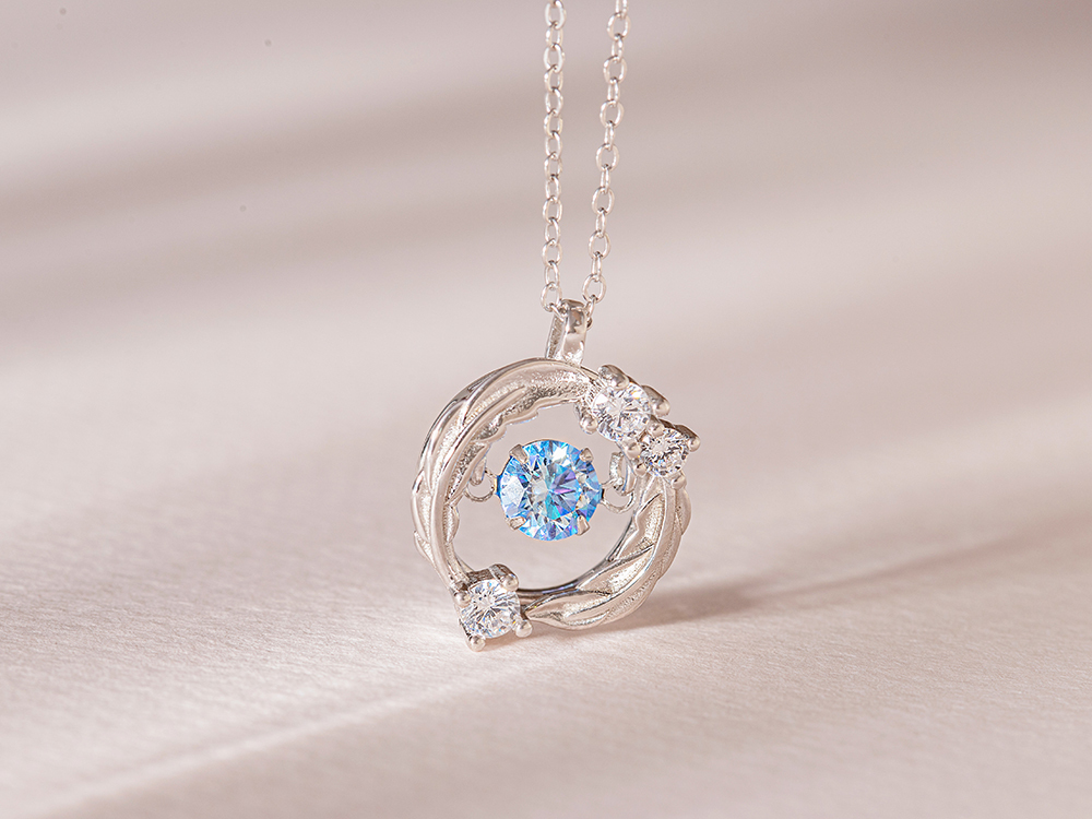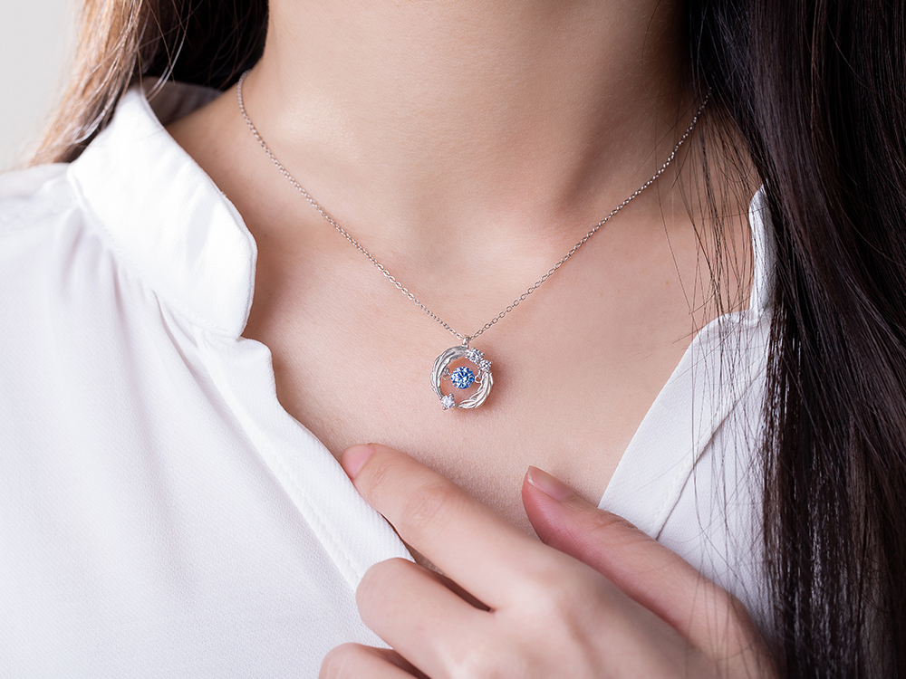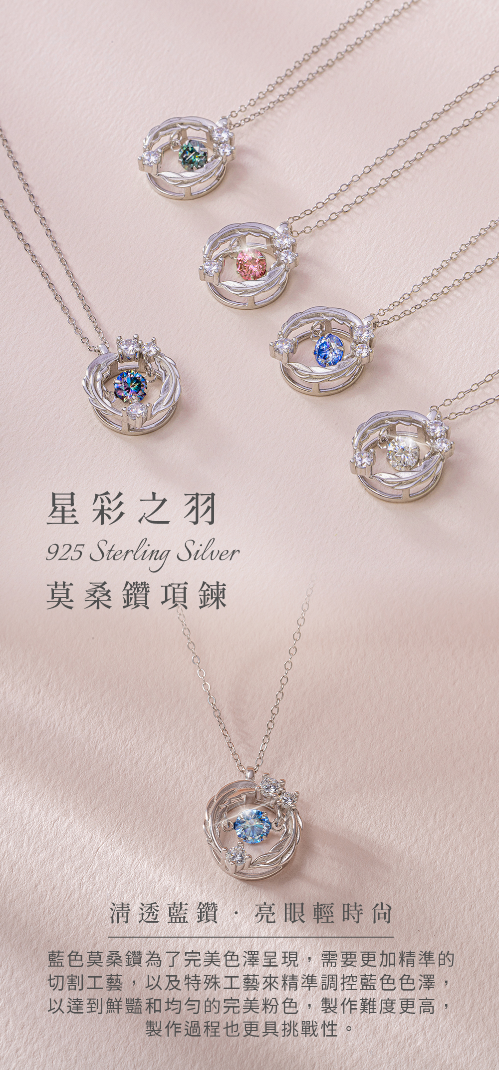 星彩之羽925純銀莫桑鑽項鍊-藍