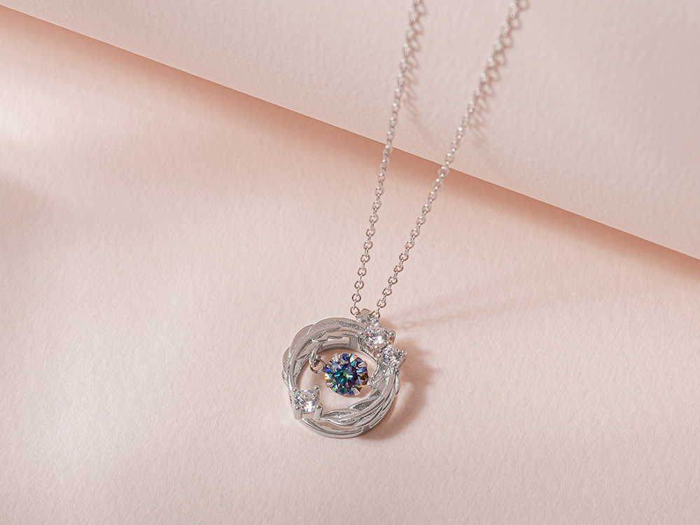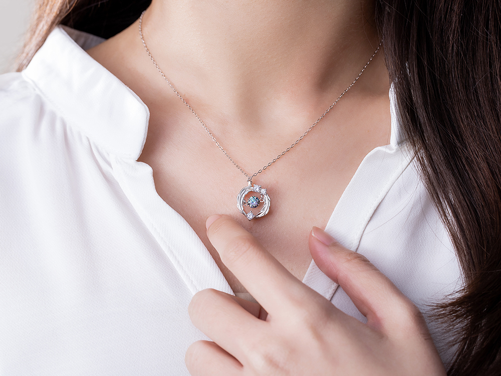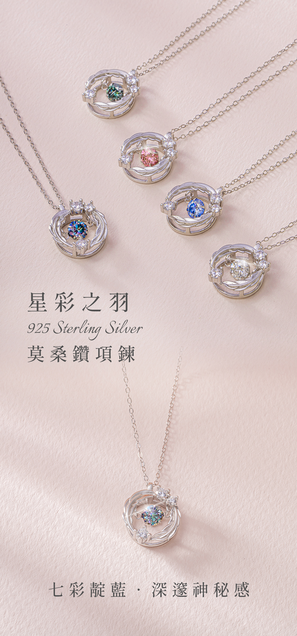 星彩之羽925純銀莫桑鑽項鍊-靛