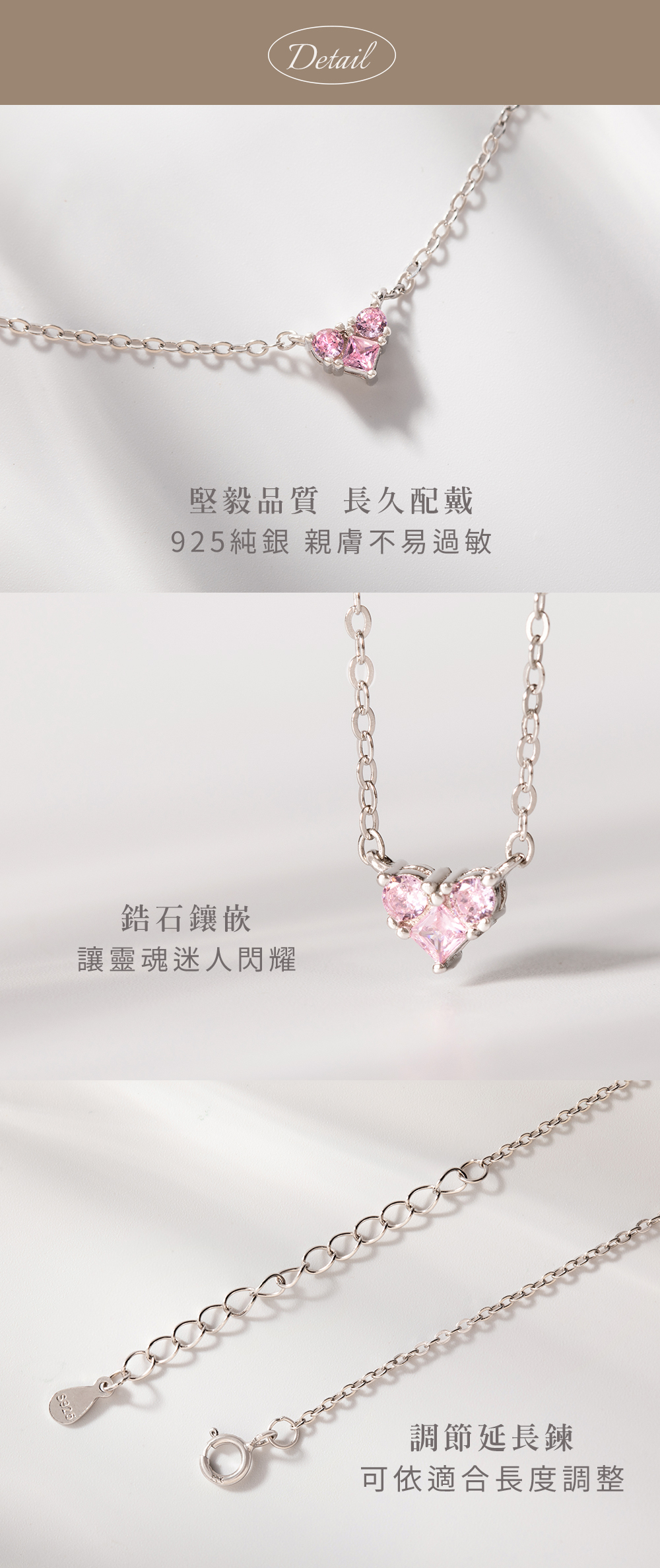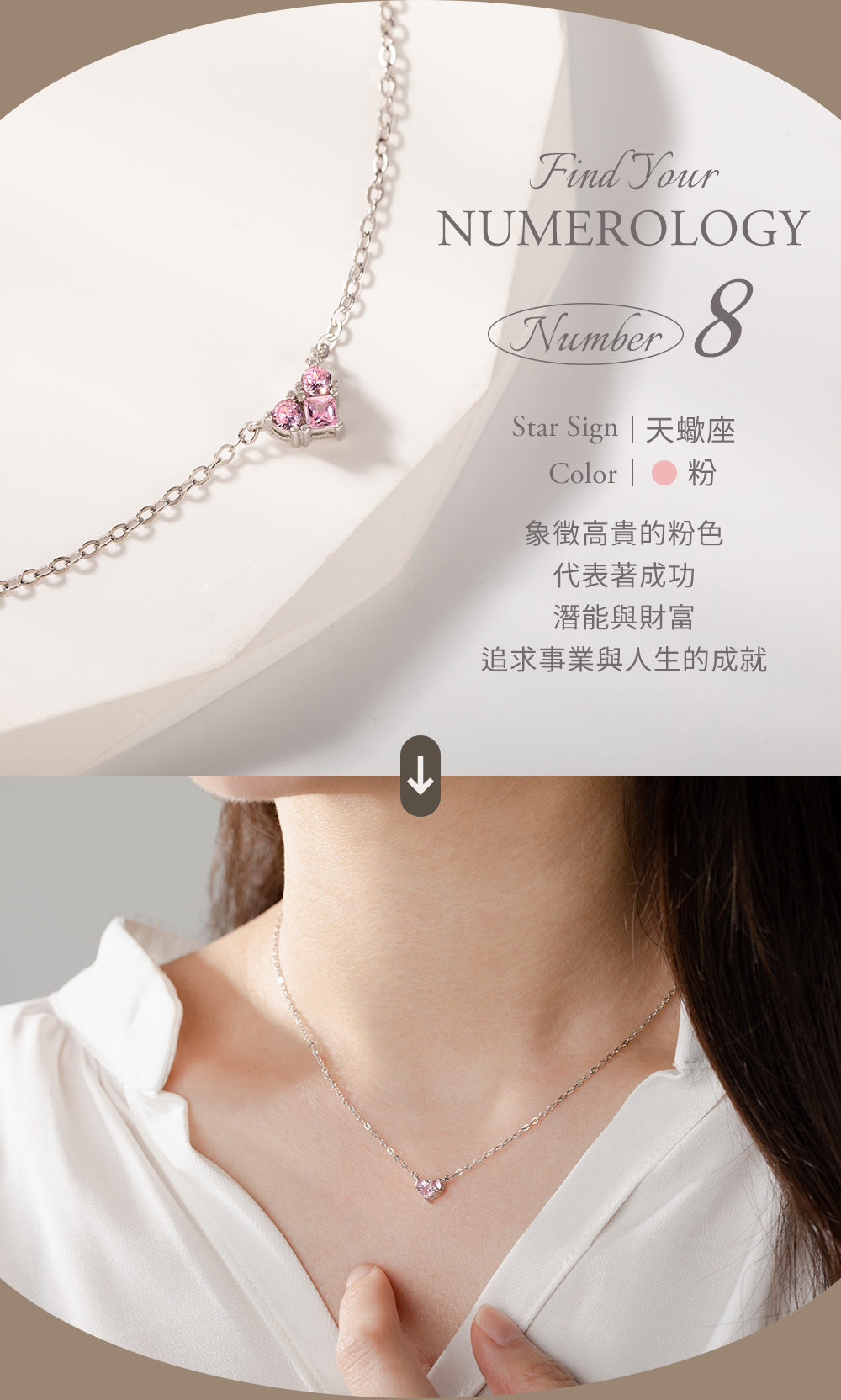 生命靈數No.8因果數 ‧ 幸運心925純銀項鍊-粉